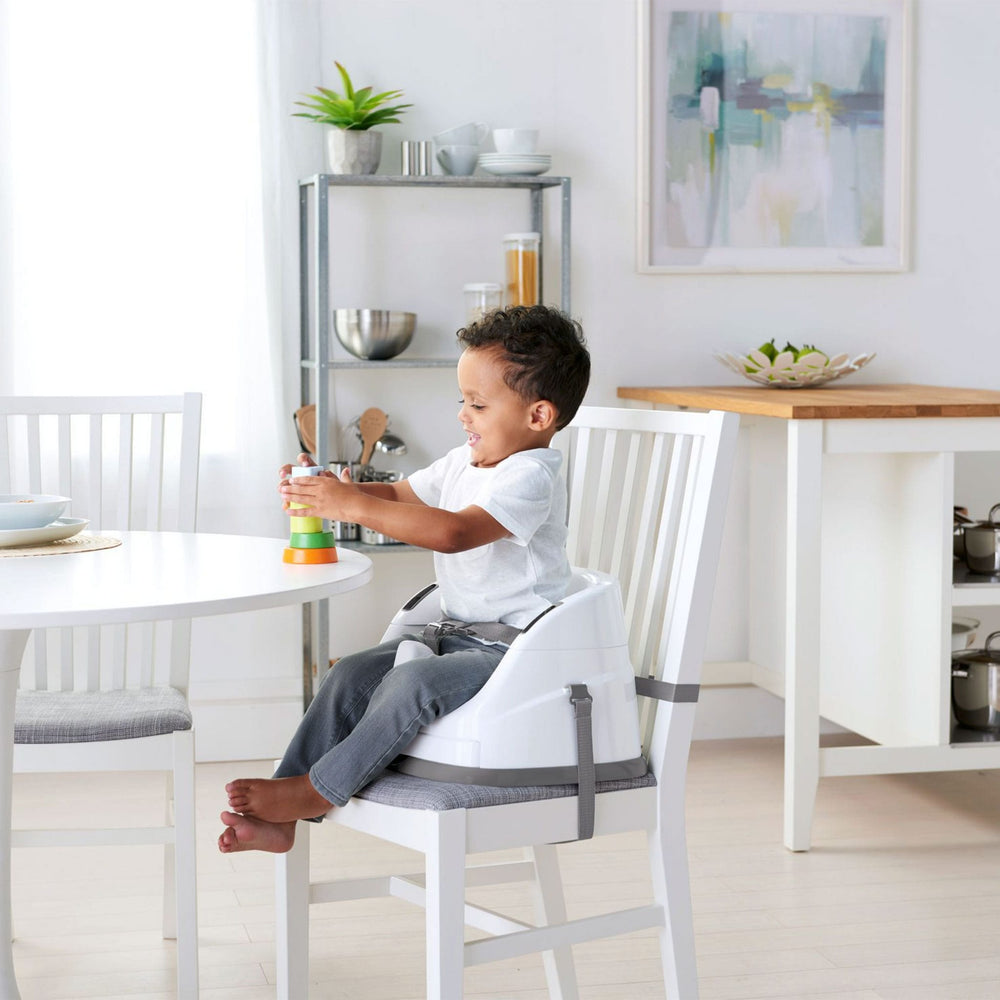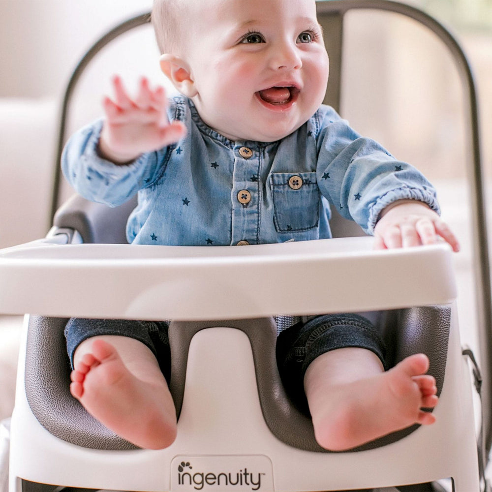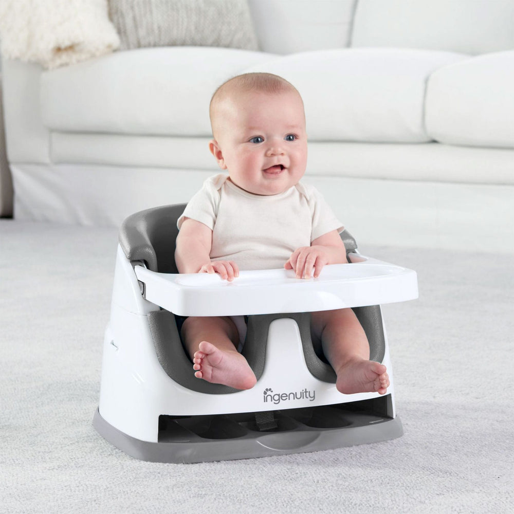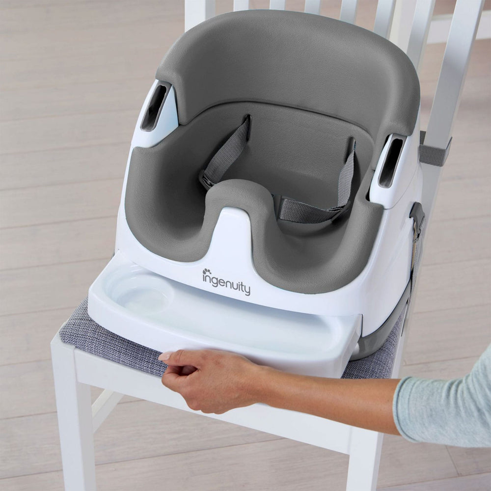 Le siège rehausseur 2 en 1 Ingenuity Baby Base se fixe facilement aux chaises de salle à manger pour que votre bébé puisse s'asseoir plus haut et voir plus pendant les dîners en famille. Ce siège d'alimentation portable pour bébé fonctionne aussi bien assis avec vous à table ou comme siège au sol pendant la récréation. Le plateau amovible donne à votre bébé sa propre table parfaitement dimensionnée, de sorte que les collations ou les jouets sont facilement à portée de main. Lorsqu'il n'est pas utilisé, le plateau se range facilement sous le siège d'appoint lui-même. Au fur et à mesure que votre bébé grandit, vous pouvez retirer l'insert de siège en mousse et convertir le rehausseur de bébé en siège pour tout-petit. Pour tous ces repas intermédiaires, vous pouvez compter sur le siège lavable et le plateau lavable au lave-vaisselle pour vous laisser plus de temps pour le rattrapage familial et moins pour le nettoyage de la cuisine.