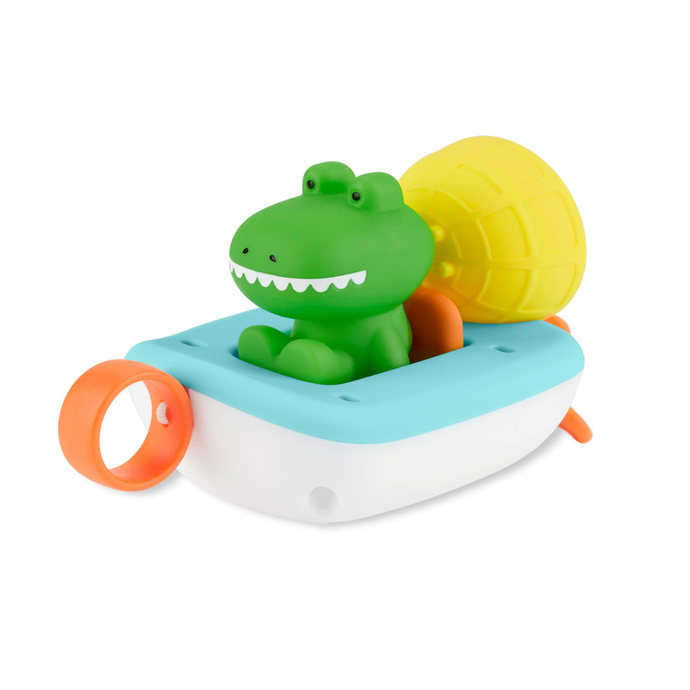 Prêt pour des tonnes de plaisir dans la baignoire, il suffit de tirer sur la ficelle et de mettre les voiles avec Clark Croc. Notre jouet de bain plein d'action comprend un hydroglisseur à remontage, un ventilateur amovible qui sert également de passoire à eau, ainsi qu'un joli squirtie en crocodile. Les tout-petits adoreront faire sensation tout en apprenant les causes et les effets, la coordination main/œil et bien plus encore pendant l'heure du bain.