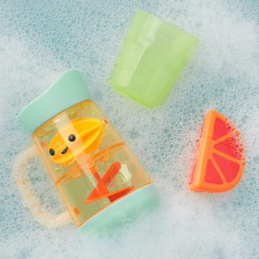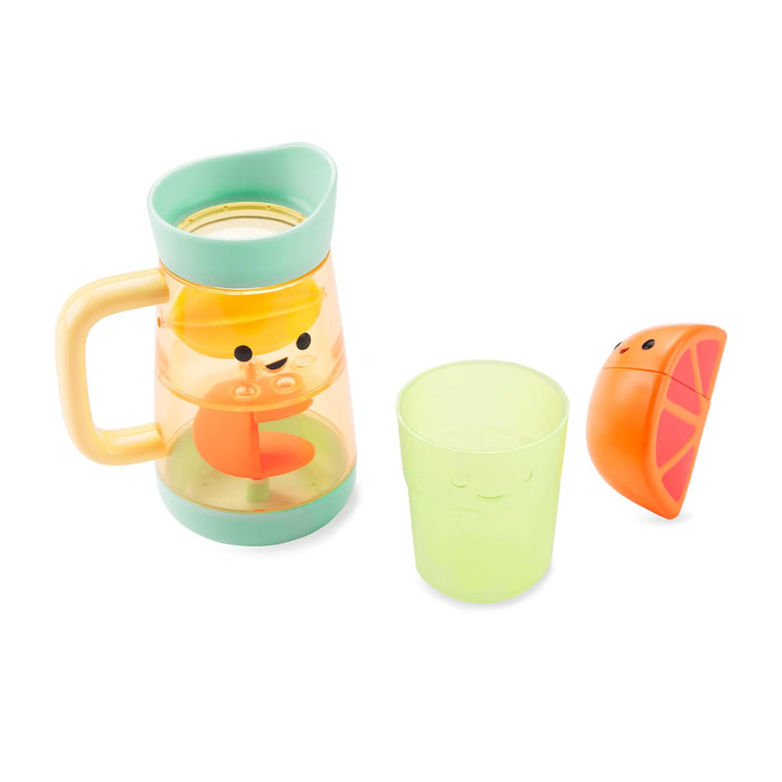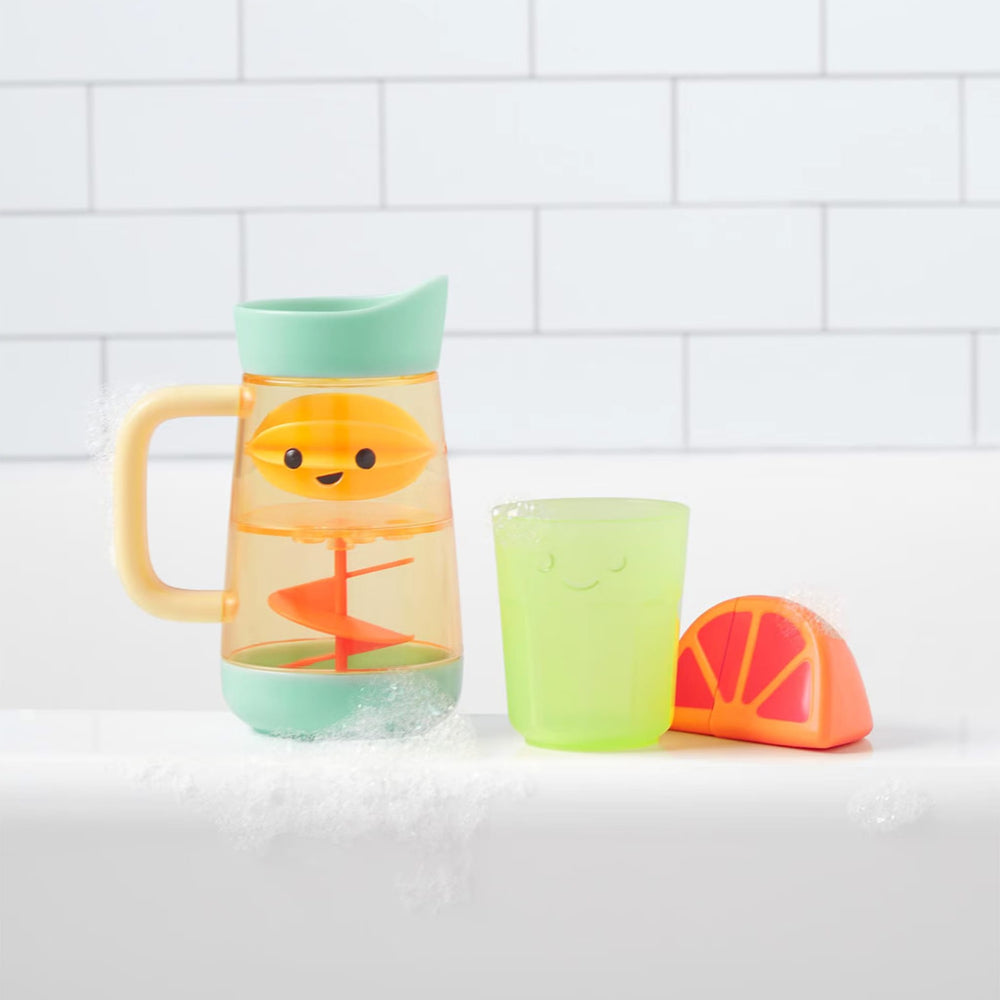 Commandez du nouveau pour le bain ! Notre coffret de jouets de bain à la limonade permet aux enfants de faire tourner, verser, filtrer, presser et bien plus encore dans la baignoire. Avec un pichet, une essoreuse à citron, une tasse et un arroseur à tranches d'agrumes, les petits adoreront jouer à faire semblant (et resteront dans le bain plus longtemps) !