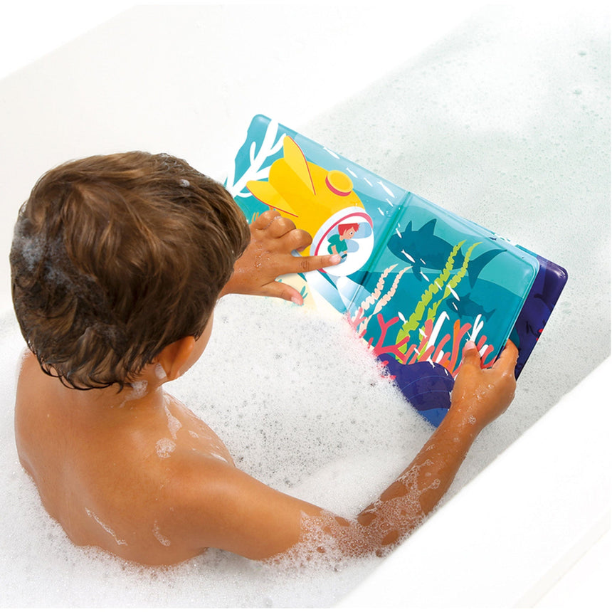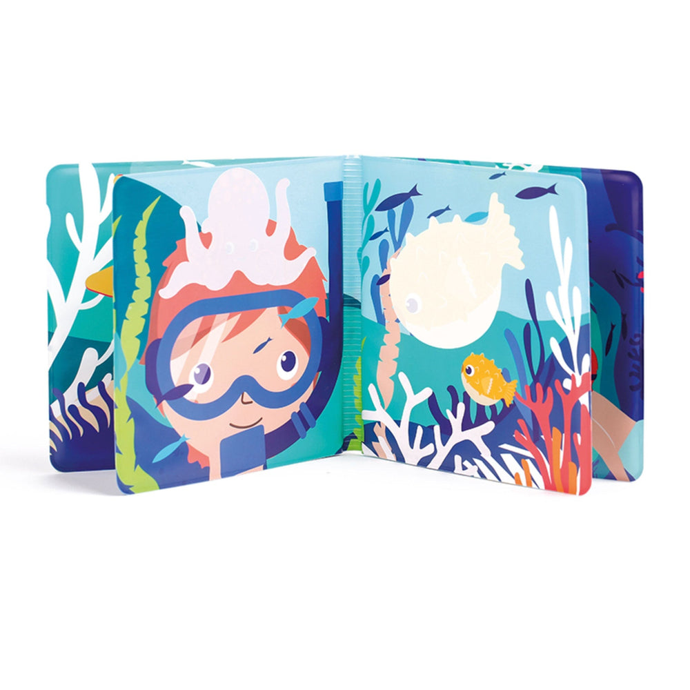 Découvrez 12 animaux marins fascinants et coraux magiques à travers les pages lumineuses de ce livre 18 x 18 cm. Fabriqué à partir de plastique souple, ce livre durable est spécialement conçu pour être utilisé dans l'eau, ajoutant une touche d'émerveillement à l'heure du bain.