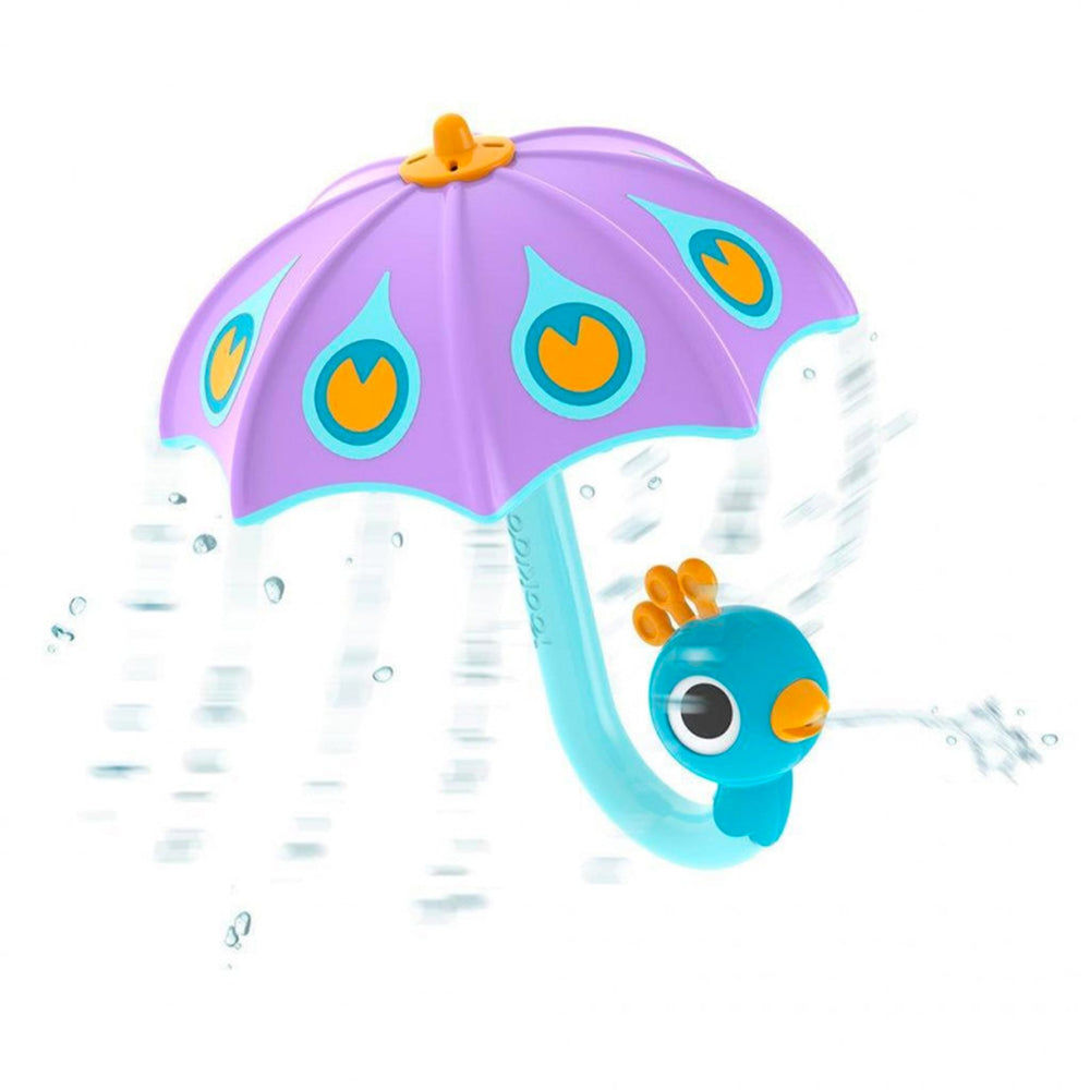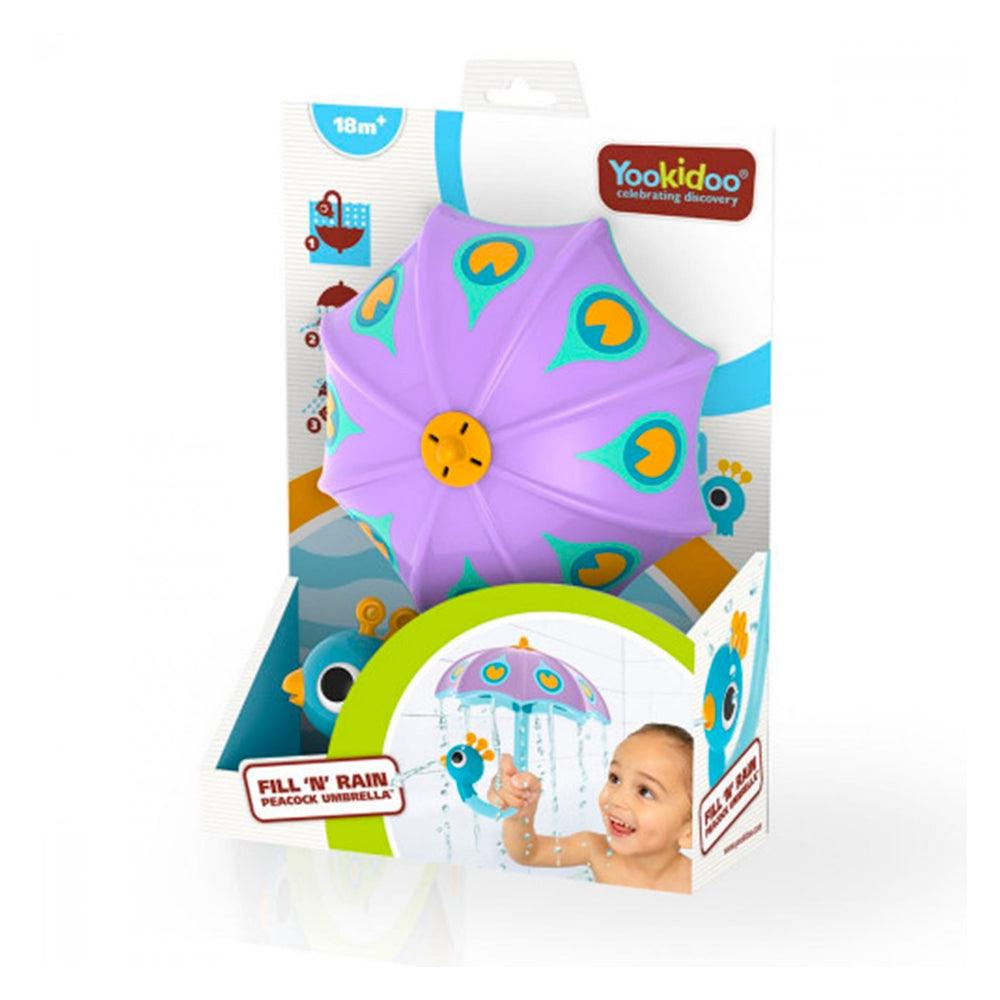 -Ce jouet de bain en forme de paon se remplit d’eau et fait des bulles lorsqu’il est immergé, puis, une fois relevé et retourné à l’endroit, il la fait doucement pleuvoir.