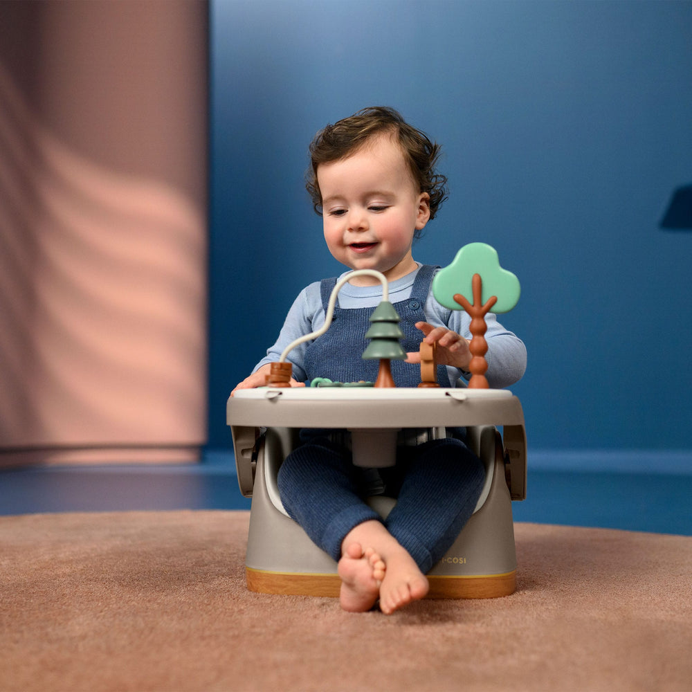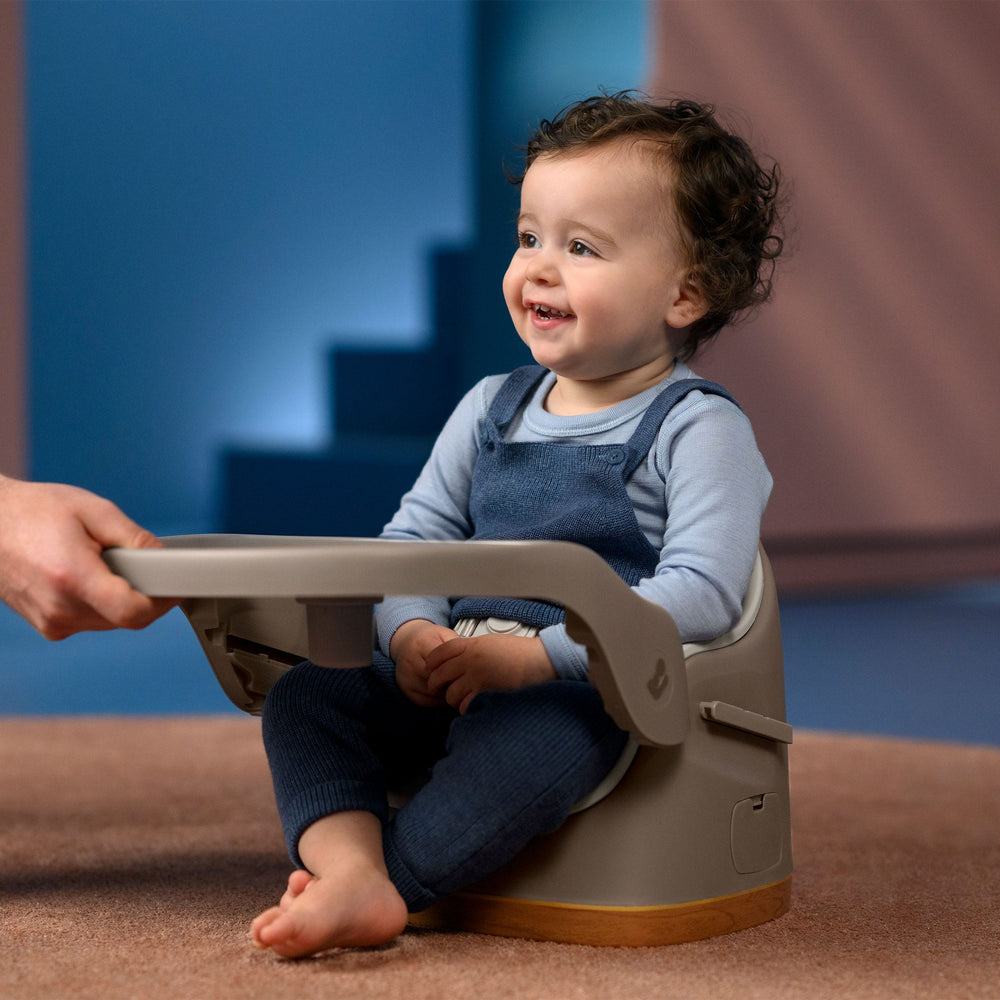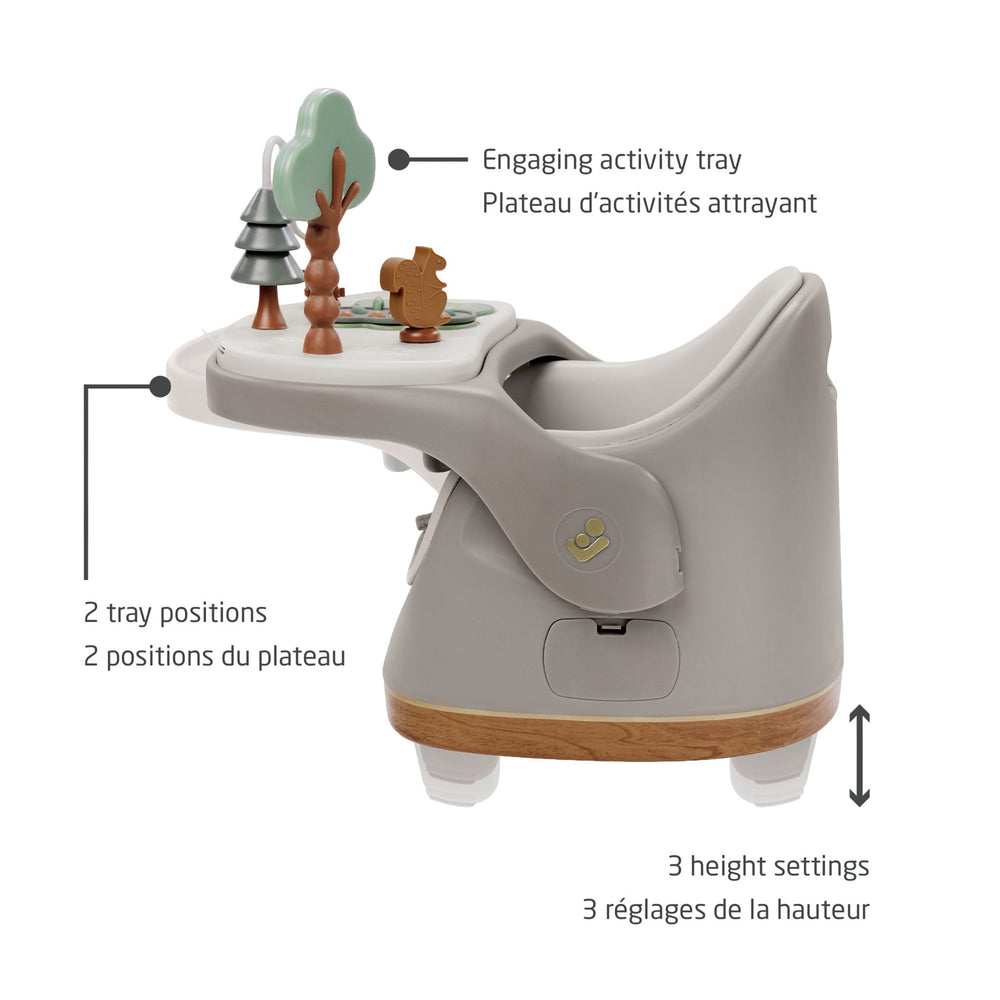 La hauteur réglable et les deux positions du plateau permettent au siège de grandir avec votre bébé de 6 mois à 3 ans. Utilisez-le à table comme siège d'appoint, au sol pour jouer en toute autonomie ou avec le plateau attaché pour les collations et les activités.