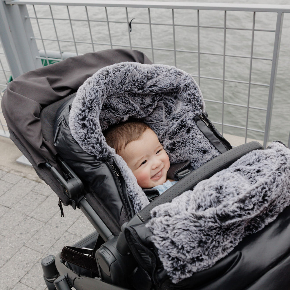 La chancelière CozyGanoosh Luxe Premium garde votre enfant au chaud et avec style par tous les temps. Son doublure amovible à glissière facilite l’ajustement selon la météo : une couche supérieure en fausse fourrure pour les journées froides et une option en tricot léger pour les périodes plus douces.
