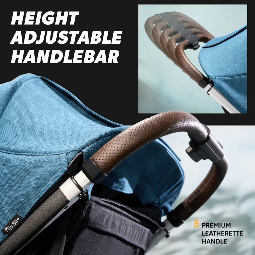 Profitez d’une conduite haut de gamme grâce au guidon ajustable en similicuir, à la boucle magnétique et au grand panier de rangement. À mesure que votre enfant grandit, ajustez facilement les harnais en les tirant simplement vers le haut pour les positionner au niveau supérieur. Offrez-lui un confort optimal avec le repose-mollets réglable et le siège inclinable presque à plat, actionnable d’un simple geste. Lorsque votre enfant souhaite se redresser, il suffit de pousser le dossier du siège vers l’avant — sans sangles ni manipulations inutiles. La capote fonctionnelle comprend trois panneaux de ventilation avec fermetures magnétiques, pour surveiller votre enfant sans le réveiller. Les adaptateurs pour siège d’auto pour bébé inclus sont compatibles avec tous les sièges d’auto pour bébé Baby Jogger et Graco®, afin de créer facilement votre propre système de voyage. Faisant partie de la collection écoresponsable Baby Jogger, cette poussette est dotée de tissus doux fabriqués à partir de matériaux recyclés.