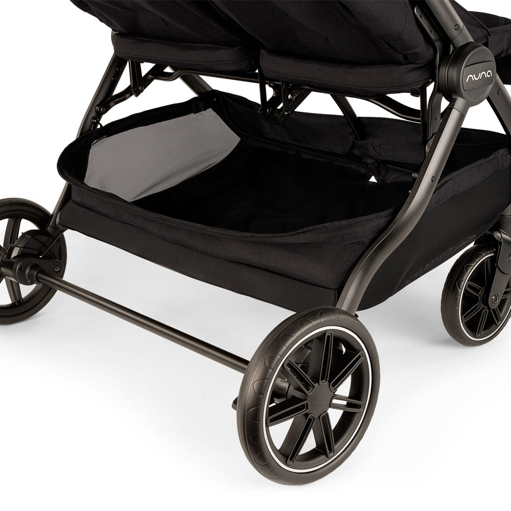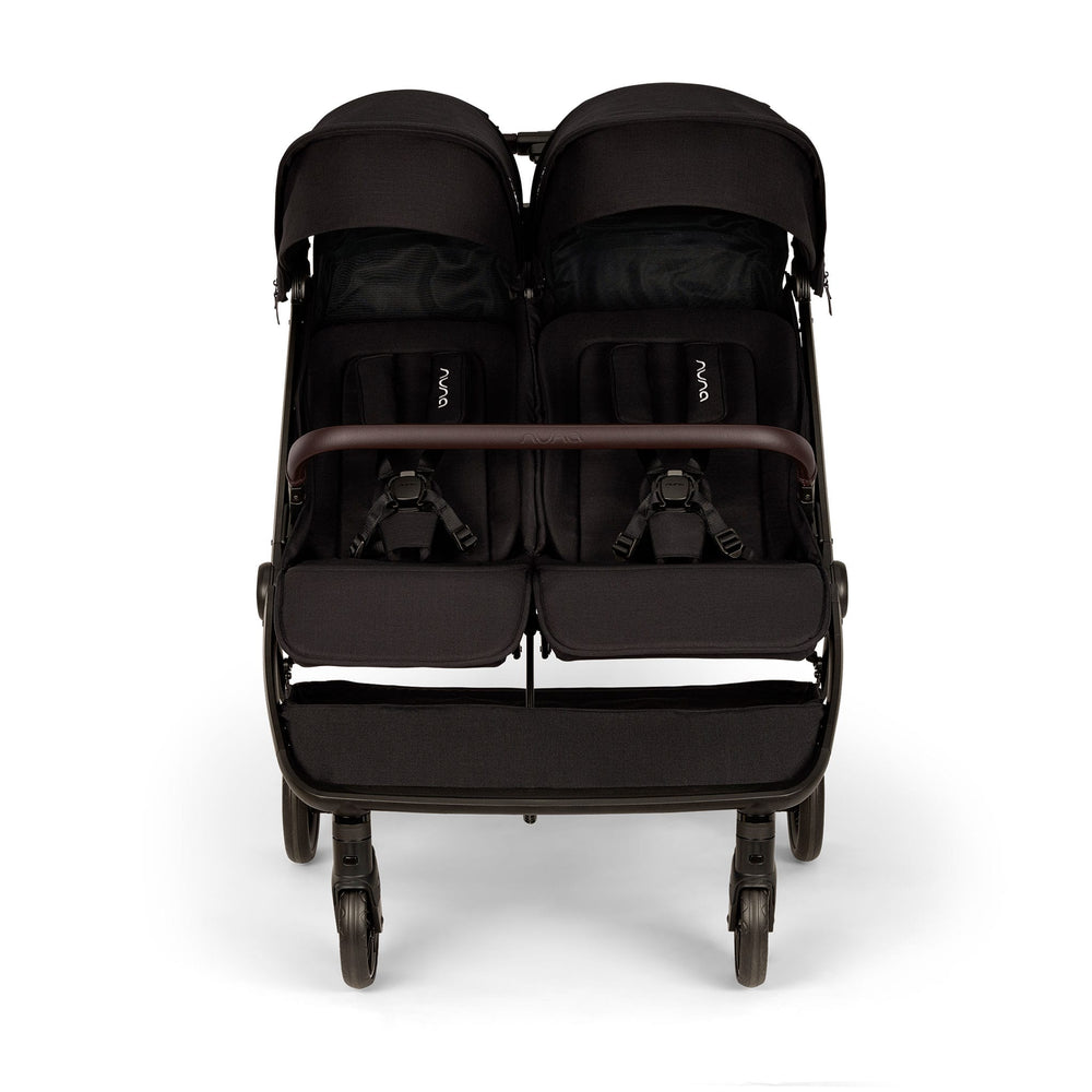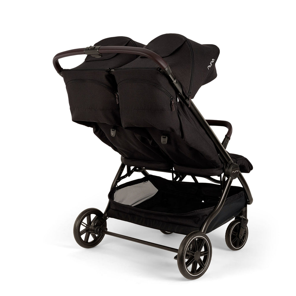 -Se plie facilement d’une seule main et tient debout une fois plié. Avec un poids de 25,2 lb, il est léger pour une poussette double et facile à transporter avec la barre lorsque plié.