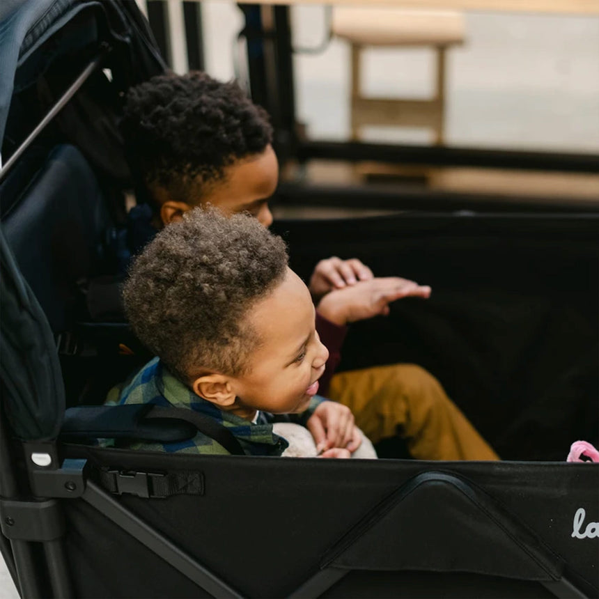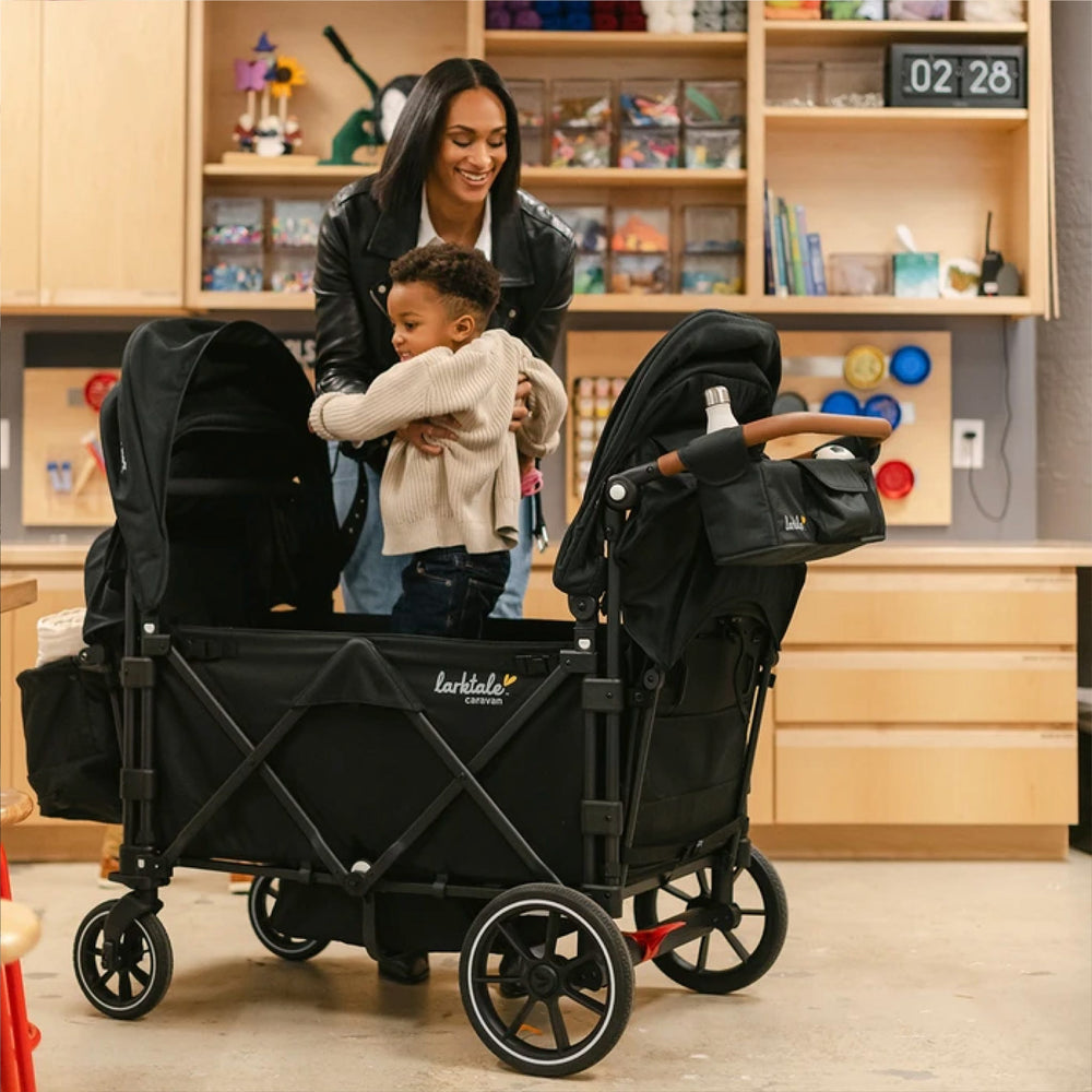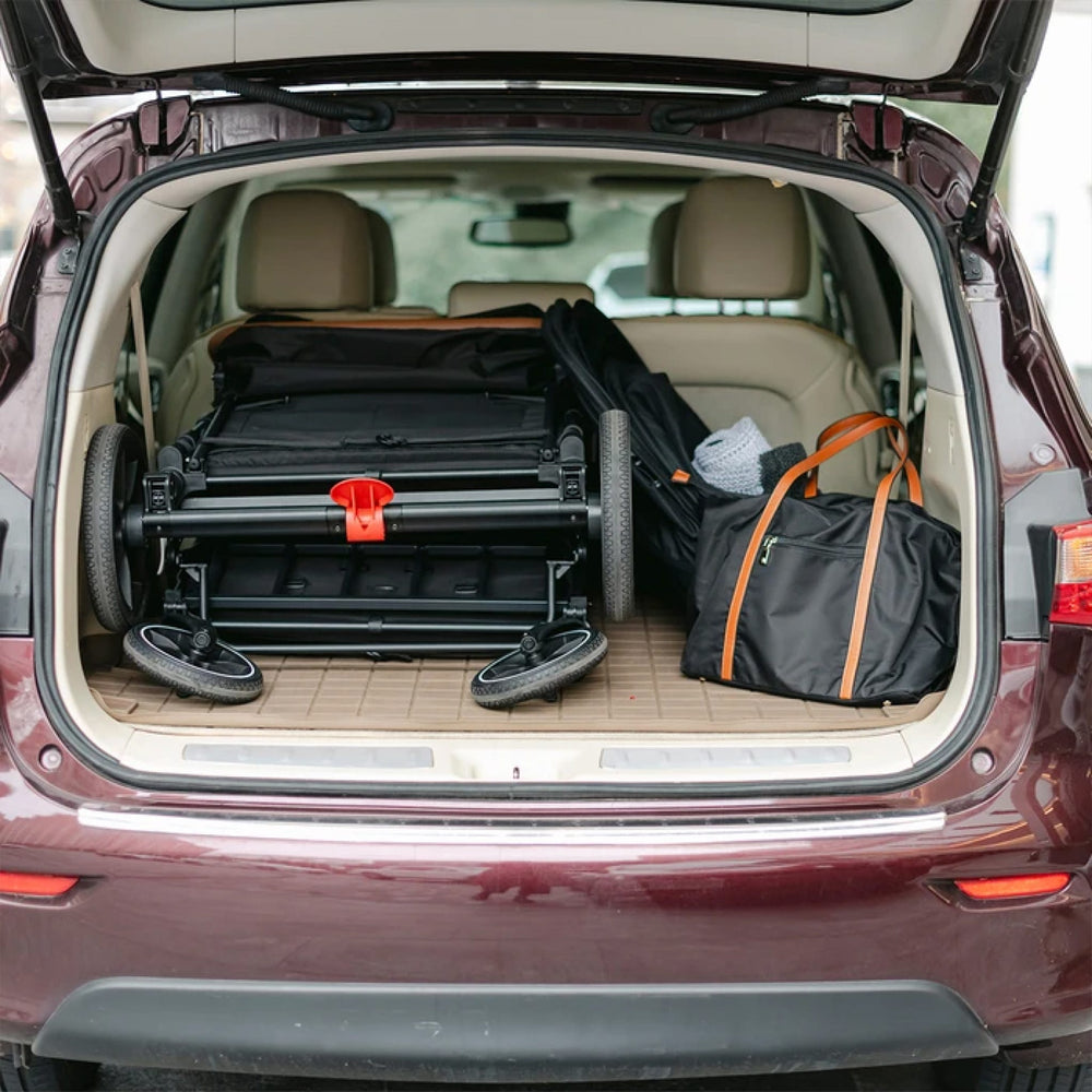 Convient de 6 mois à 93 lb par siège, l’intérieur spacieux de la caravane V3 peut accueillir jusqu’à 4 passagers en utilisant nos kits de siège double (vendus séparément) et peut même accueillir un nouveau-né en toute sécurité en utilisant l’adaptateur de siège-auto caravan (vendu séparément). Si vous avez besoin d’espace pour transporter des marchandises ou laisser vos tout-petits étirer leurs jambes, il suffit d’attacher le recouvrement de repose-pied inclus pour un intérieur à base plate sécurisé pour répondre à vos besoins. Les parents adoreront également le guidon en similicuir réglable en hauteur, les multiples compartiments de rangement, le porte-gobelet auto-nivelant, les grandes roues en caoutchouc et le système de suspension intégrale.