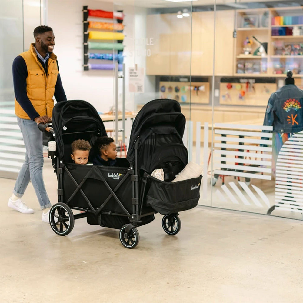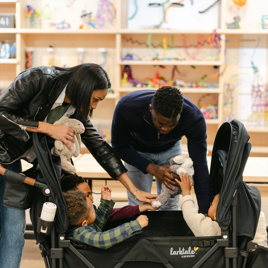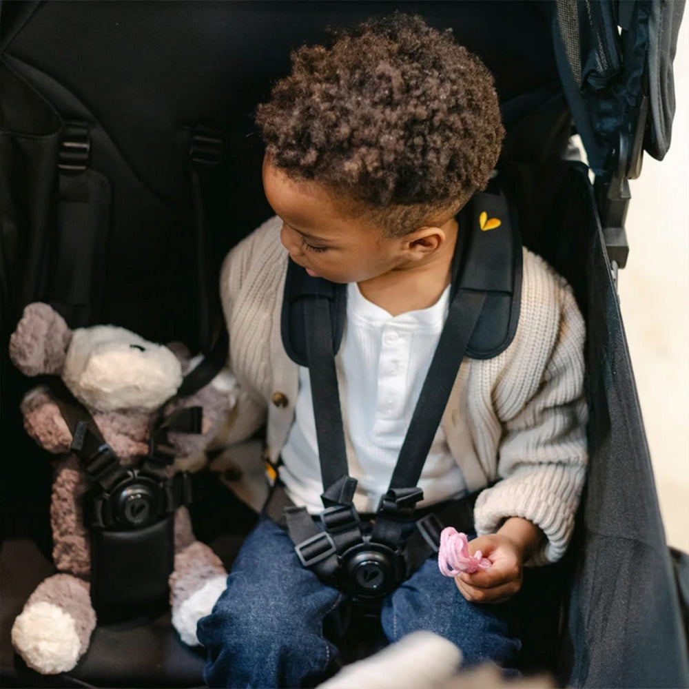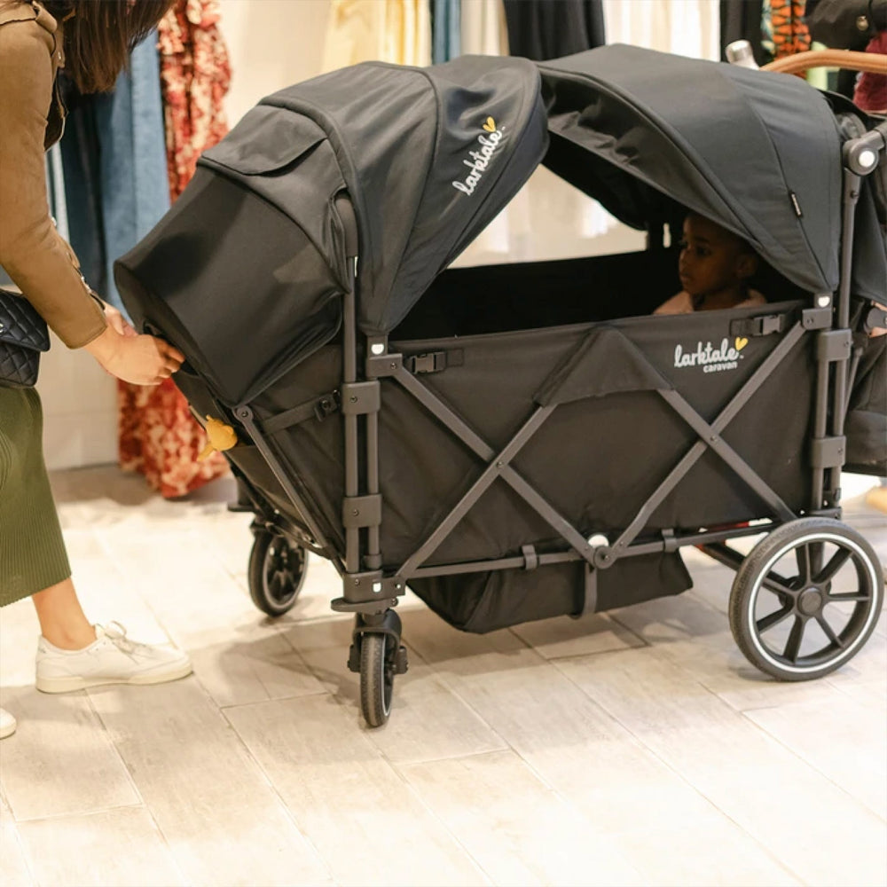 Convient de 6 mois à 93 lb par siège, l’intérieur spacieux de la caravane V3 peut accueillir jusqu’à 4 passagers en utilisant nos kits de siège double (vendus séparément) et peut même accueillir un nouveau-né en toute sécurité en utilisant l’adaptateur de siège-auto caravan (vendu séparément). Si vous avez besoin d’espace pour transporter des marchandises ou laisser vos tout-petits étirer leurs jambes, il suffit d’attacher le recouvrement de repose-pied inclus pour un intérieur à base plate sécurisé pour répondre à vos besoins. Les parents adoreront également le guidon en similicuir réglable en hauteur, les multiples compartiments de rangement, le porte-gobelet auto-nivelant, les grandes roues en caoutchouc et le système de suspension intégrale.
