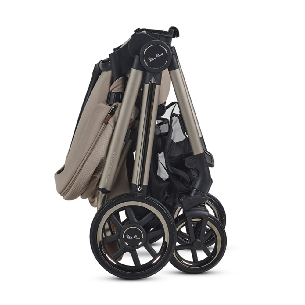 -Fermeture en quelques secondes; une fois pliée, la poussette tient à la verticale sur ses quatre roues sans que la poignée touche le sol
