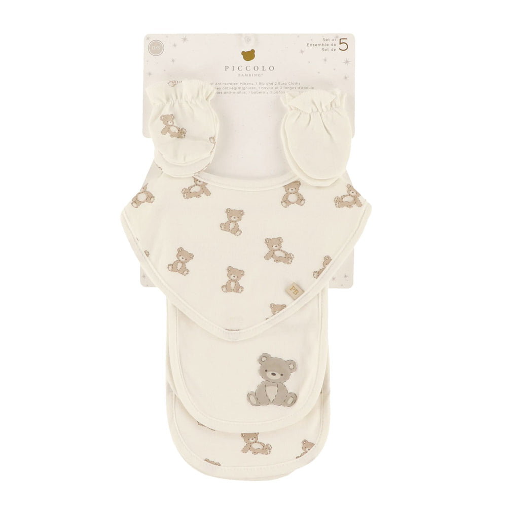 Ensemble cadeau comprend: 2 paires de mitaines anti-égratignures, 1 bavoir, 2 langes d'épaule