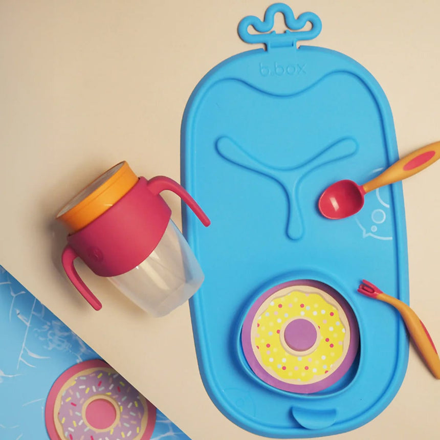 Conçu avec intention : fonctions à deux modes pour une utilisation à la maison et en déplacement. Tournez les poignées vers le bas pour exposer le bord en silicone pour boire facilement, puis tournez les poignées vers le haut pour verrouiller et sceller afin d'éviter toute fuite dans les sacs ou les poussettes. De plus, le bord en silicone reste propre et hygiénique.