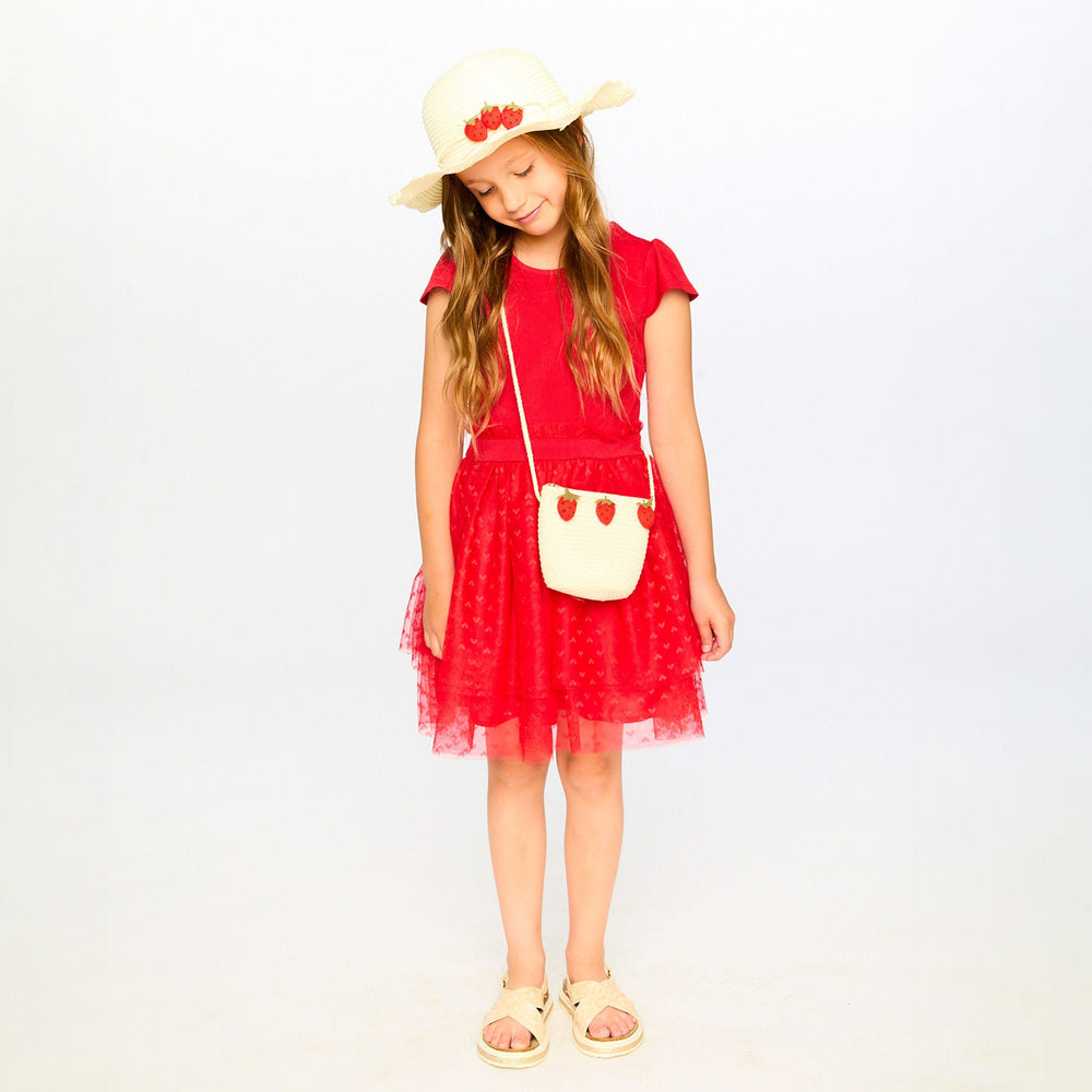 Délicieusement estival, notre sac fraise en paille beige est un accessoire ludique pour les journées ensoleillées. Ce sac bandoulière 100 % fait en paille a une lanière tressée robuste et trois appliqués de fraises pour une touche fruitée. Léger et plein de charme, il s’agence à merveille avec les pièces de la collection "Explosion de marguerites" pour un look d’été harmonieux.