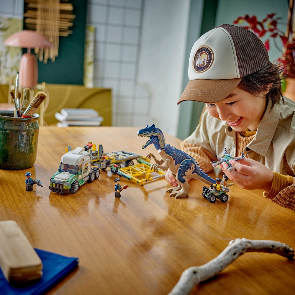 Faites plaisir aux amateurs d’aventure avec ce dinosaure LEGO® Jurassic World, comprenant un allosaurus, quatre figurines, un camion, une remorque et plus.