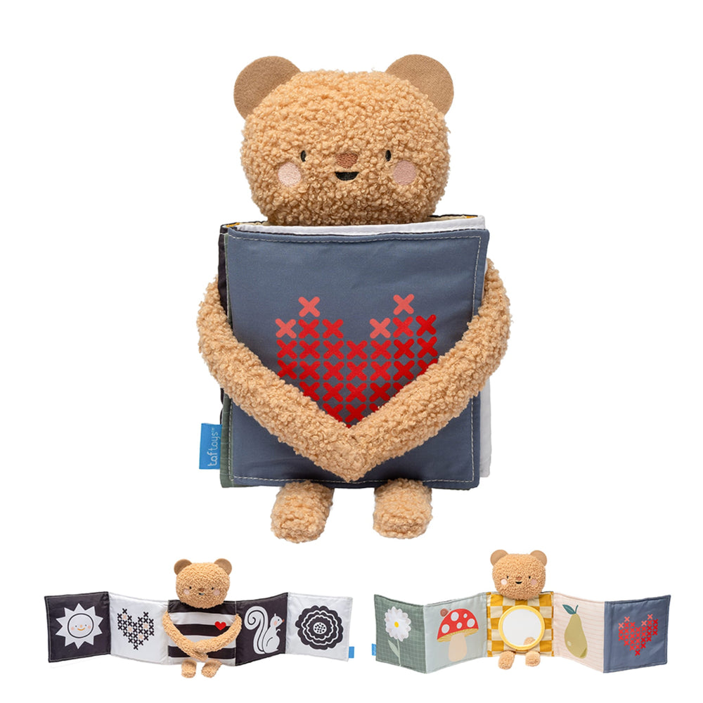 Voici le livre sensoriel réversible de Taf Toys, une fusion parfaite entre un outil de développement visuel à contraste élevé et un univers visuel coloré. Conçu spécialement comme un jouet idéal pour les bébés de 0 à 6 mois, ce livre pliable propose deux côtés stimulants : un côté à contraste élevé pour répondre aux besoins visuels des nouveau-nés et un côté coloré et vif qui éveille la curiosité et l’exploration visuelle au fur et à mesure que bébé grandit. Avec son adorable ourson en peluche douce, ce livre devient un compagnon réconfortant lors du temps sur le ventre ou un jouet amusant à emporter, soutenant des étapes clés du développement.