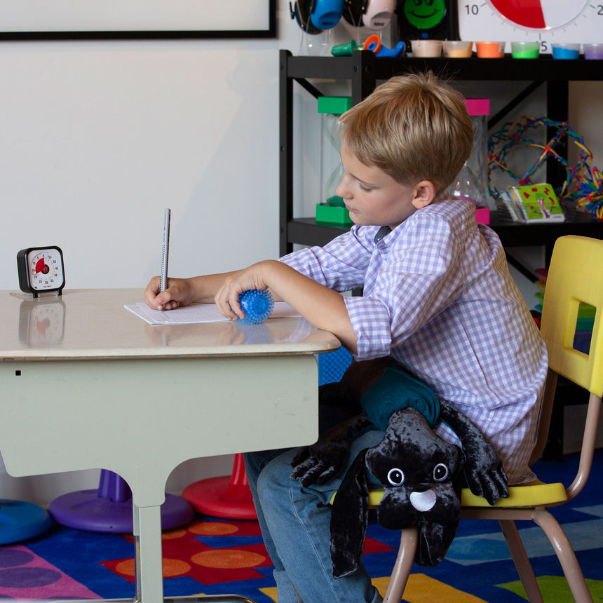 Manimo est une peluche lestée qui a été créée ici il y a 20 ans. Elle a d’abord été conçue pour les enfants avec besoins particuliers (autisme et TDAH par exemple) et vendue auprès des professionnels de l’éducation. Avec le temps, Manimo est devenu un outil thérapeutique utilisé dans les écoles, par tous les enfants pour les aider à se concentrer et gérer leur niveau d’énergie. On peut dire qu’à peu près tous les enfants au Québec connaissent Manimo! Prouvé scientifiquement, son poids exerce une pression profonde qui régule le système nerveux central. Lorsque l’enfant est agité, il permet de l’apaiser. Lorsque l’enfant est amorphe, il permet de ramener l’attention à son niveau optimal. On pourrait le comparer à un mouvement de balancier.