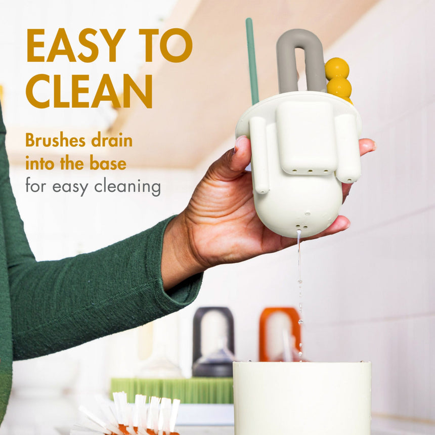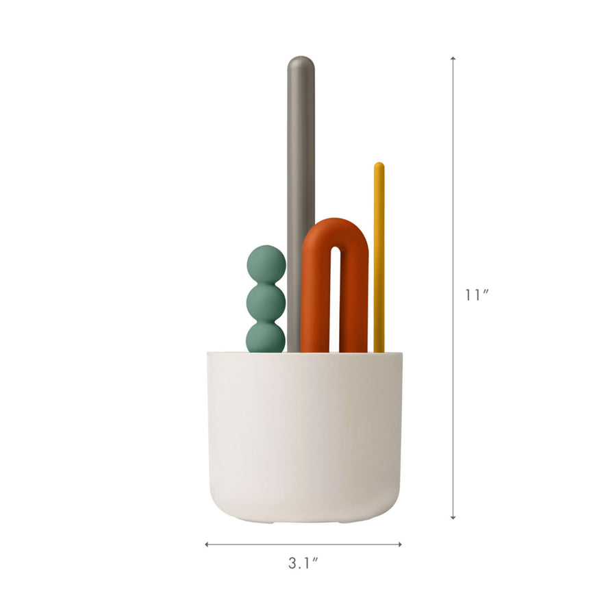 L'ensemble de brosses MOD de Boon simplifie le nettoyage tout en restant esthétique ! Ce kit complet comprend quatre brosses de tailles différentes, chacune équipée de poils en nylon robustes, idéales pour éliminer les résidus des biberons, pailles, tasses à bec et accessoires de tire-lait. La base permet d’évacuer l’eau et de garder les brosses regroupées, facilitant ainsi l’accès à celle qu’il vous faut.