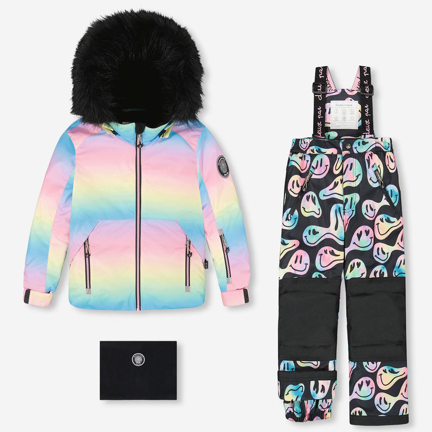 Imperméable, respirant et isolant pour une protection contre le froid jusqu’à -30°C (-22°F), notre habit de neige deux pièces PLAY à imprimé de madames sourire est conçu pour offrir un maximum de confort, de chaleur et de performance dans la neige. Ce manteau d’hiver doublé en polaire est muni d’un capuchon amovible et ajustable, de manches articulées pour une meilleure amplitude de mouvement, de poignets élastiques, d’une jupe pare-neige, de manches extensibles pour accompagner la croissance de l’enfant, ainsi que d’une plaquette coupe-froid et d’une mentonnière protectrice. Le pantalon est doté d’empiècements renforcés en Cordura® pour une durabilité accrue, de genoux articulés, de bretelles ajustables et amovibles, de pare-neige aux chevilles, et de poches zippées pour ranger un pass de ski ou d’autres essentiels.