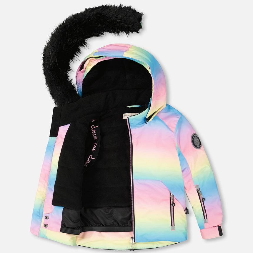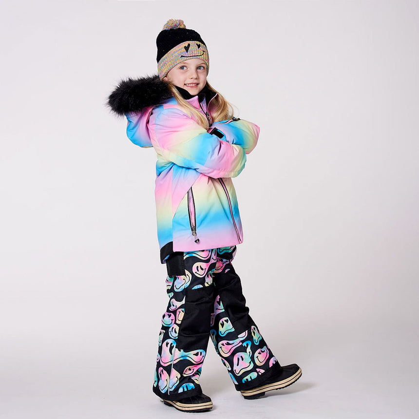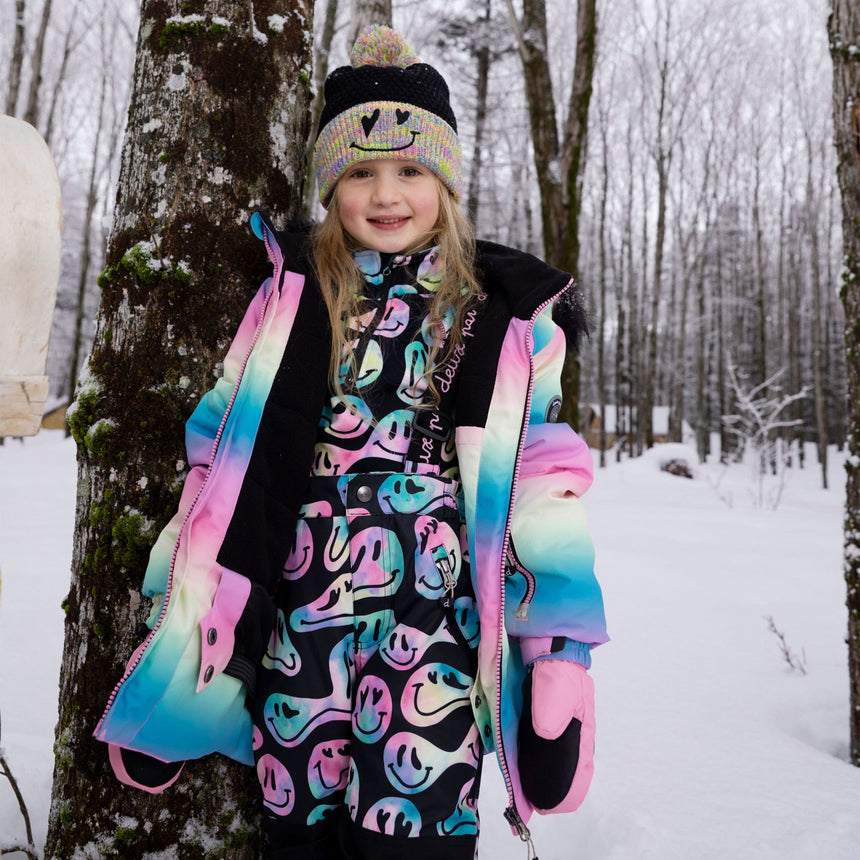 Imperméable, respirant et isolant pour une protection contre le froid jusqu’à -30°C (-22°F), notre habit de neige deux pièces PLAY à imprimé de madame sourire est conçu pour offrir un maximum de confort, de chaleur et de performance dans la neige. Ce manteau d’hiver doublé en polaire est muni d’un capuchon amovible et ajustable, de manches articulées pour une meilleure amplitude de mouvement, de poignets élastiques, d’une jupe pare-neige, de manches extensibles pour accompagner la croissance de l’enfant, ainsi que d’une plaquette coupe-froid et d’une mentonnière protectrice. Le pantalon est doté d’empiècements renforcés en Cordura® pour une durabilité accrue, de genoux articulés, de bretelles ajustables et amovibles, de pare-neige aux chevilles, et de poches zippées pour ranger un pass de ski ou d’autres essentiels.