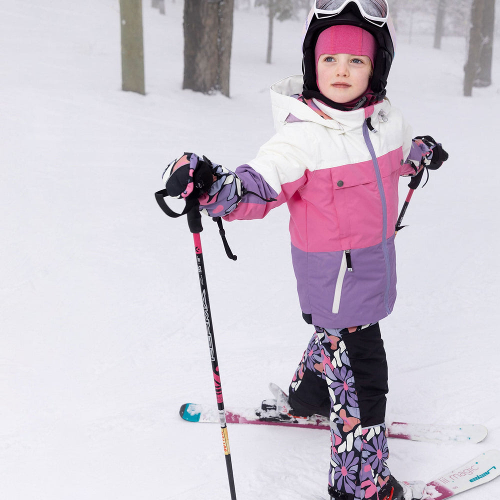 Cet habit de neige deux pièces TEKNIK est l’un des ensembles de ski les plus techniques que nous ayons jamais conçus, regorgeant de détails pensés pour améliorer la durabilité, offrir une protection optimale et maximiser la performance jusqu’à -30°C (-22°F). Avec son imprimé marbré rose et bleu intégral, cet ensemble est doté d’une isolation mince en PrimaLoft pour une chaleur maximale, de manches et de genoux articulés, ainsi que d’ourlets et de manches ajustables pour accompagner la croissance de l’enfant. Imperméable, respirant, résistant à l’abrasion et déperlant, il comprend également un capuchon amovible compatible avec un casque, des pare-neige pour bloquer les intempéries, une mentonnière, des poches à fermeture éclair imperméables et une taille ajustable avec bretelles amovibles. Un cache-cou en polaire et une doublure en polaire dans le manteau ajoutent un surplus de chaleur.
