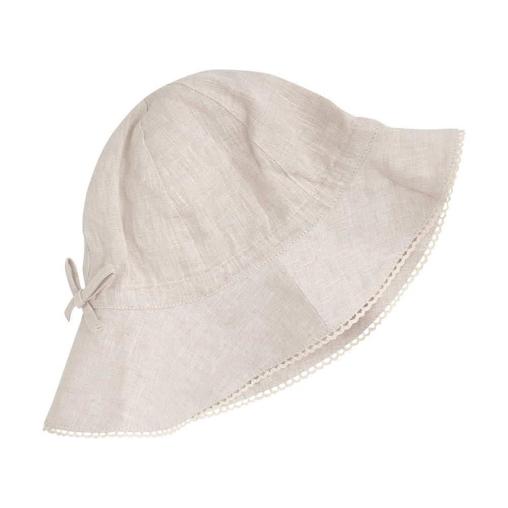 Adorable chapeau de soleil uni avec une jolie bordure de la marque HUTTEliHUT. Ce chapeau est confectionné en lin 100 % avec une doublure unie. Un cordon passe au centre du chapeau, formant un nœud à l'arrière et permettant un ajustement à la morphologie de la tête de l'enfant. Plus long à l'arrière. Idéal pour se protéger du soleil lors des chaudes journées d'été. Certifié OEKO-TEX® STANDARD 100, n° de certificat 2276-364 DTI.
