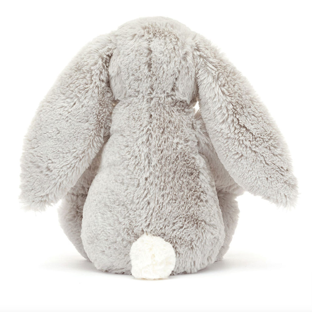 Blossom Silver Bunny adore se promener à minuit parmi les parterres de fleurs. Revêtu de sa fourrure emblématique Bashful gris argenté et d'une queue courte crème, Blossom Silver Bunny possède des oreilles et des pattes en coton doux, ornées d'un motif Jellycat original, composé de fleurs roses et blanches disséminées sur un fond bleu nuit. Le compagnon idéal pour la nuit, quel que soit l'âge.