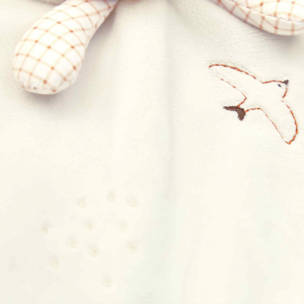 Confectionné avec soin, ce doudou crème est composé à 86% de matières recyclées (micro-velours et popeline), y compris son rembourrage en polyester recyclé.