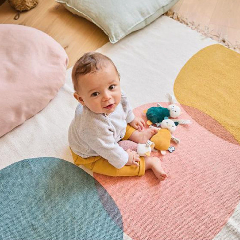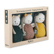 Trois p'tits chats, trois p'tits chats … Ces adorables doudous chat font leur entrée dans l'univers de bébé pour le stimuler et éveiller ses sens ! Idéals dès la naissance, ce set de trois chatons promet de longs moments de découvertes sensorielles à votre enfant. Avec leurs rubans pour les accrocher partout, ces petites peluches trouveront leur place sur l'arche d'éveil de bébé ou dans sa poussette, pour l'accompagner partout !