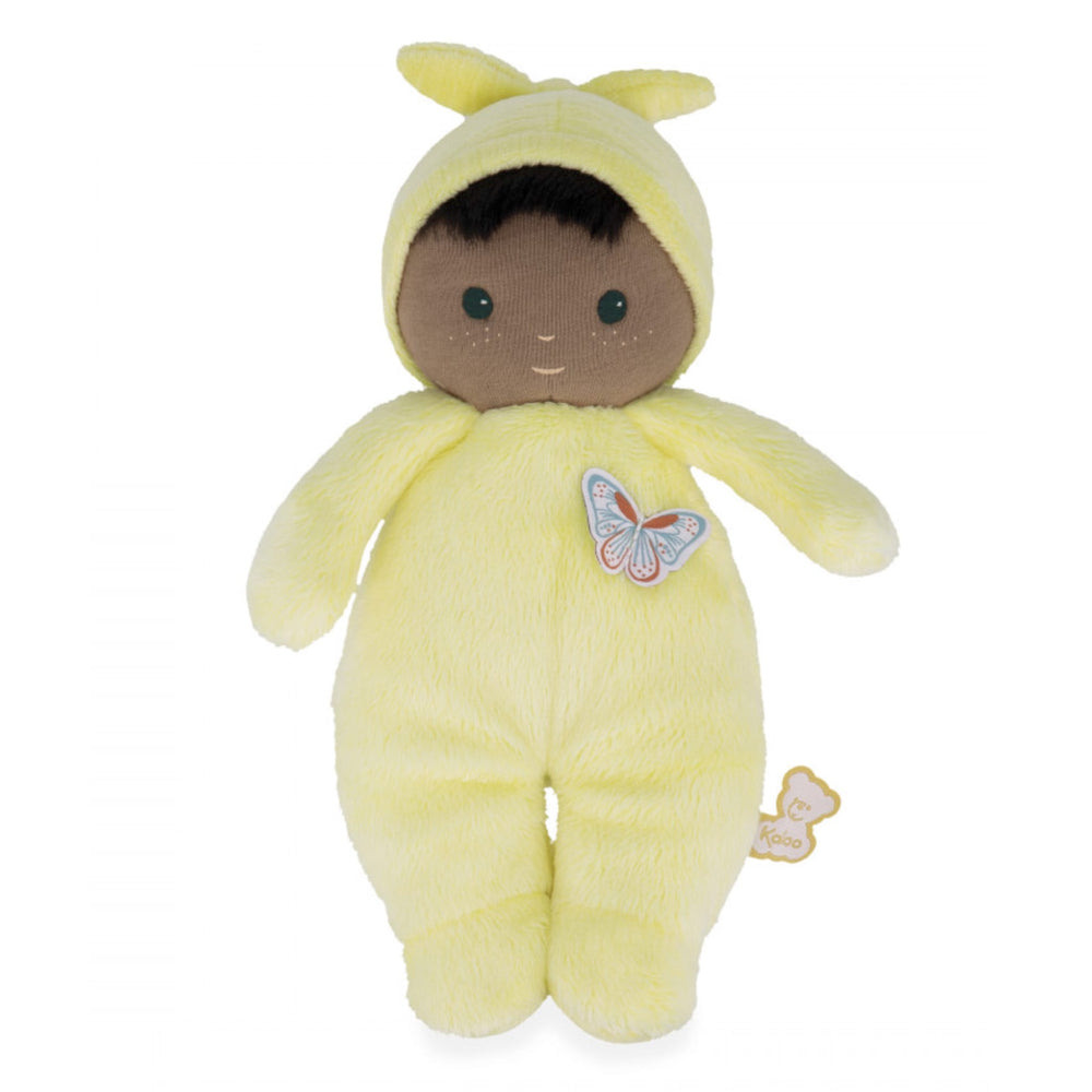- Ce délicat poupon brun de 24 cm se distingue par son corps de couleur jaune et ses beaux yeux verts.