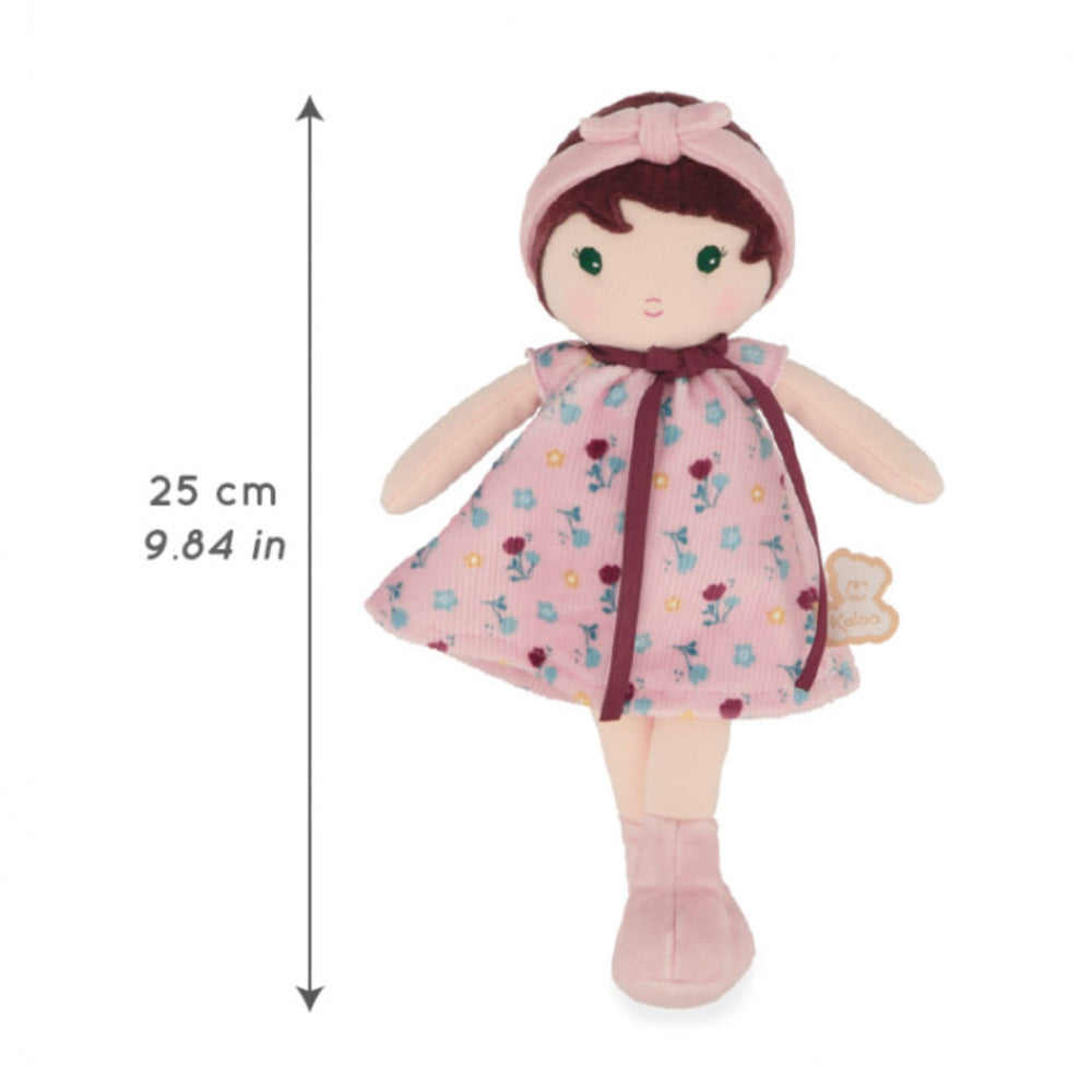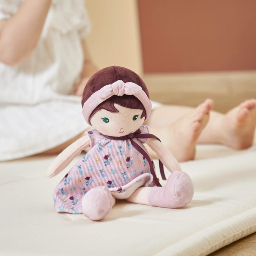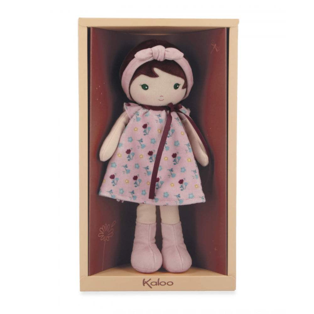 Faites la rencontre de Léonie, une poupée en tissu ornée de motifs floraux, dans son format 25 cm. Adaptée à bébé dès sa naissance, elle fait partie de la collection de poupées Tendresse de Kaloo. La poupée Léonie porte une sublime robe avec des imprimés floraux, reflétant sa grâce et sa simplicité. Assorties à son bandeau, ses bottes préférées sont parfaites pour courir dans l’herbe encore humide de la rosée matinale. Léonie est une petite poupée qui incarne la liberté et la connexion à la nature. D’une grande douceur, elle est parfaite à saisir et à câliner par les plus petits. On craque tous pour ses beaux yeux verts et son élégant ruban autour du cou ! À emporter partout pour vivre de douces histoires comme les plus folles aventures, c’est une amie toujours prête pour les câlins. Au dos de cette poupée brune, vous trouverez un ruban cousu qui permet d’inscrire le prénom son petit propriétaire. Présentée dans sa jolie boite, Léonie est un cadeau de naissance original et synonyme de tendresse. Elle est aussi parfaite comme première poupée pour stimuler l’imagination des tout-petits.