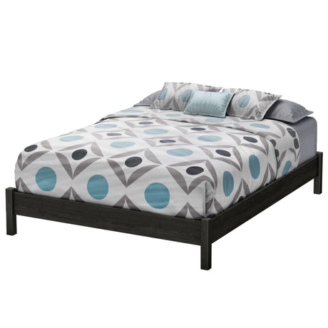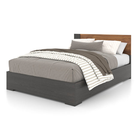 Fusion Lit Plateforme Double et Tête de Lit Rembourrés en Tissu - Gris