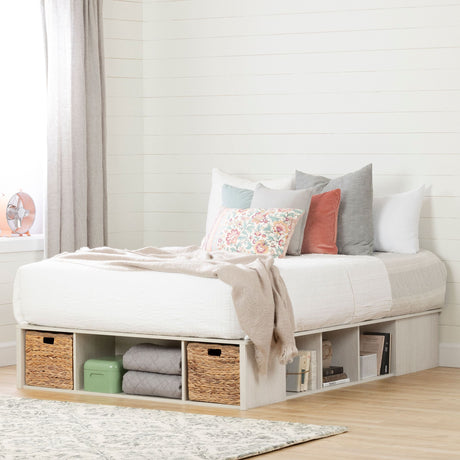 Lit Double avec paniers de rangement - Avilla Chêne blanchi