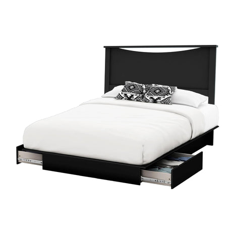 Ensemble Lit Double / Grand et tête de lit - Step One Noir solide
