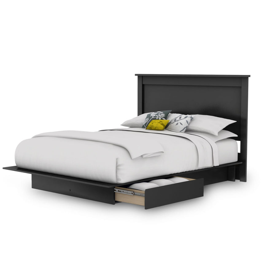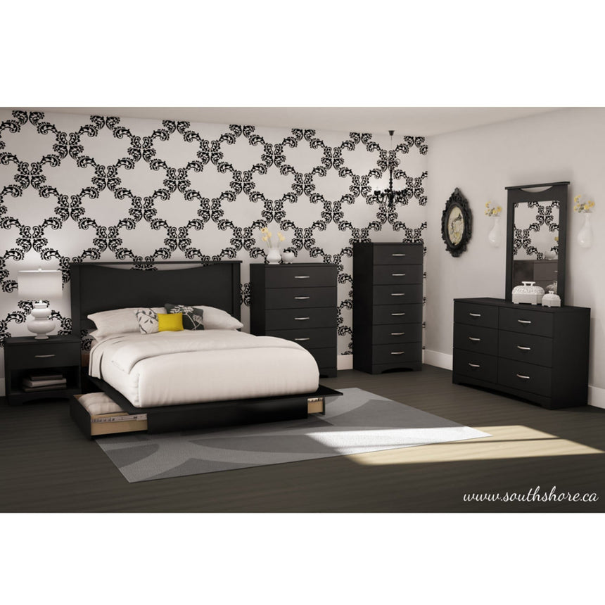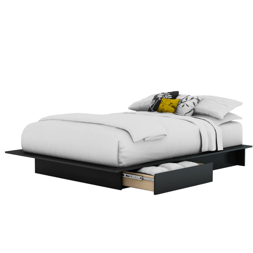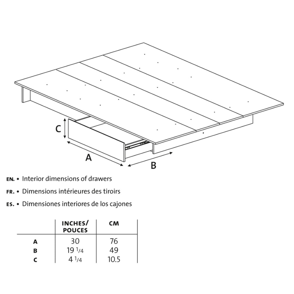 Grâce à son fini neutre et tendance et ses lignes épurées, ce lit plateforme avec tiroirs s'accorde bien aux styles d'aujourd'hui puisqu'il s'agence à tous les types de décor. De plus, il offre du rangement supplémentaire pratique dans la chambre grâce à ses deux tiroirs.