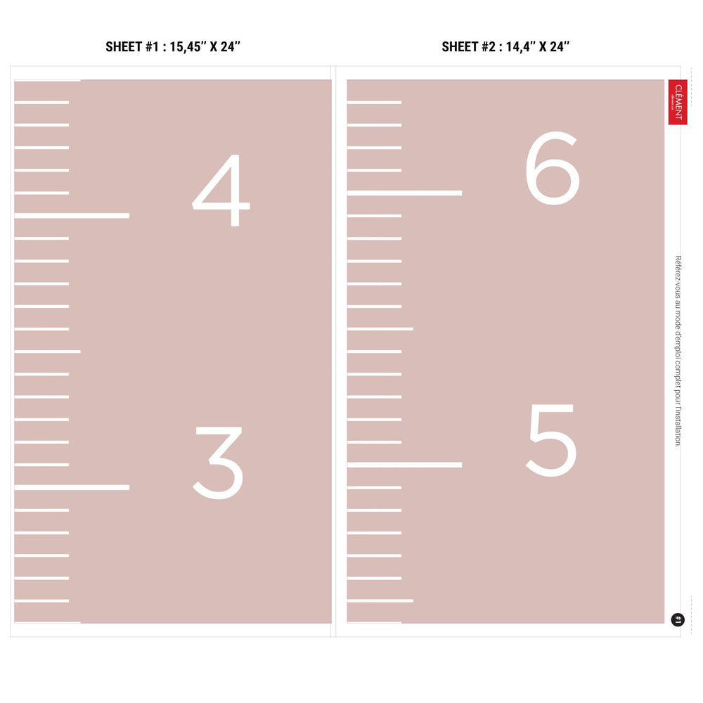 - L’échelle de croissance pourra être conservée en souvenir une fois décollée du mur. Pour ce faire, assurez-vous de conserver le support papier afin de recoller les autocollants.