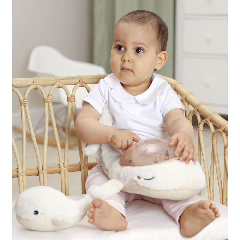 Cette jolie baleine diffuse une douce lumière et projette au plafond de la chambre les vagues de l'océan en mouvement grâce à un mécanisme unique et breveté. Une mélodie marine et le bruit des vagues (bruit blanc) apaiseront les plus petits pour les emmener sur le chemin du sommeil. Sa matière peluche est ultra-douce.