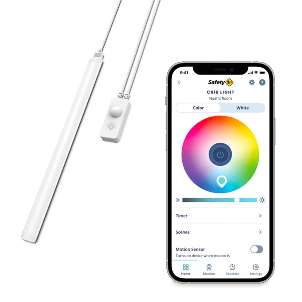 La lumière intelligente Under Crib brille doucement sous le berceau ou le lit de votre tout-petit. Activé automatiquement avec un détecteur de mouvement intégré. Personnalisez la luminosité et les couleurs de l'éclairage ou choisissez parmi six préréglages d'éclairage recommandés. Cette lumière unique utilise l'application connectée Safety 1st qui est la seule application qui permet aux parents de créer l'environnement optimal, de définir l'ambiance, de surveiller et de réconforter leur enfant, à tout moment, de n'importe où. Cette application conviviale et conviviale pour les familles contrôle et gère de manière transparente tous les appareils de la suite connectée, offrant aux parents la confiance et la tranquillité d'esprit dont ils ont besoin pour rester connectés à leur enfant même lorsqu'ils sont séparés.