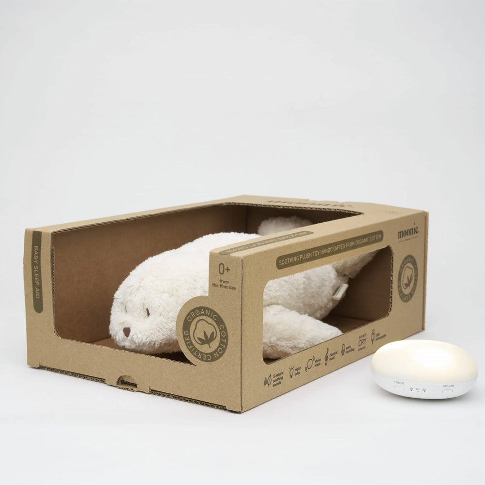 Découvrez la nouvelle génération de sommeil paisible pour votre bébé avec le MOONIE 2.0 Phoque Berçant en Coton Bio. Amoureusement confectionné à partir de coton biologique certifié, ce joli jouet en peluche apaise les tout-petits grâce à de véritables enregistrements de bruit rose, de sons apaisants de la nature et de musique classique intemporelle de Claude Debussy.