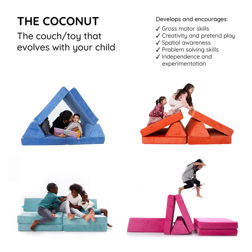 Le « coconut » est un canapé modulaire en mousse souple, sécuritaire et durable pour que les enfants puissent se détendre, sauter et exprimer leur créativité ! 100% canadien de sa conception à sa fabrication, il est l’élément complémentaire parfait à toute chambre, salon ou salle de jeux!.