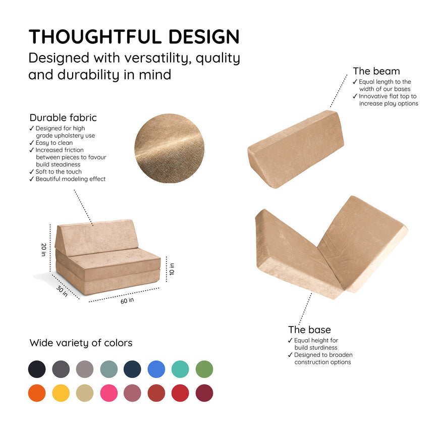 -Nos poutres ont été conçues pour avoir la même longueur qu'un coussin de base afin d'augmenter les possibilités de construction grâce à plus de hauteur.
