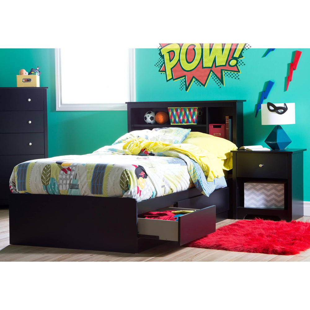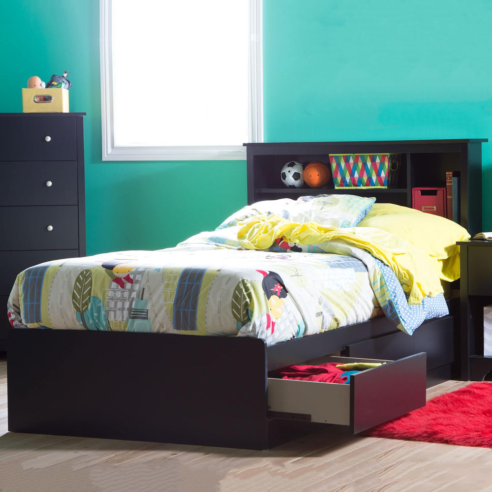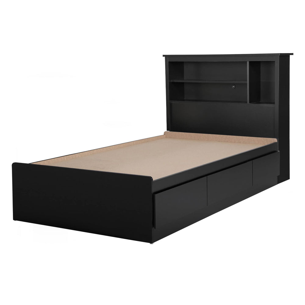 Ensemble Lit Simple Matelot avec tête de Lit bibliothèque - Vito Noir solide
