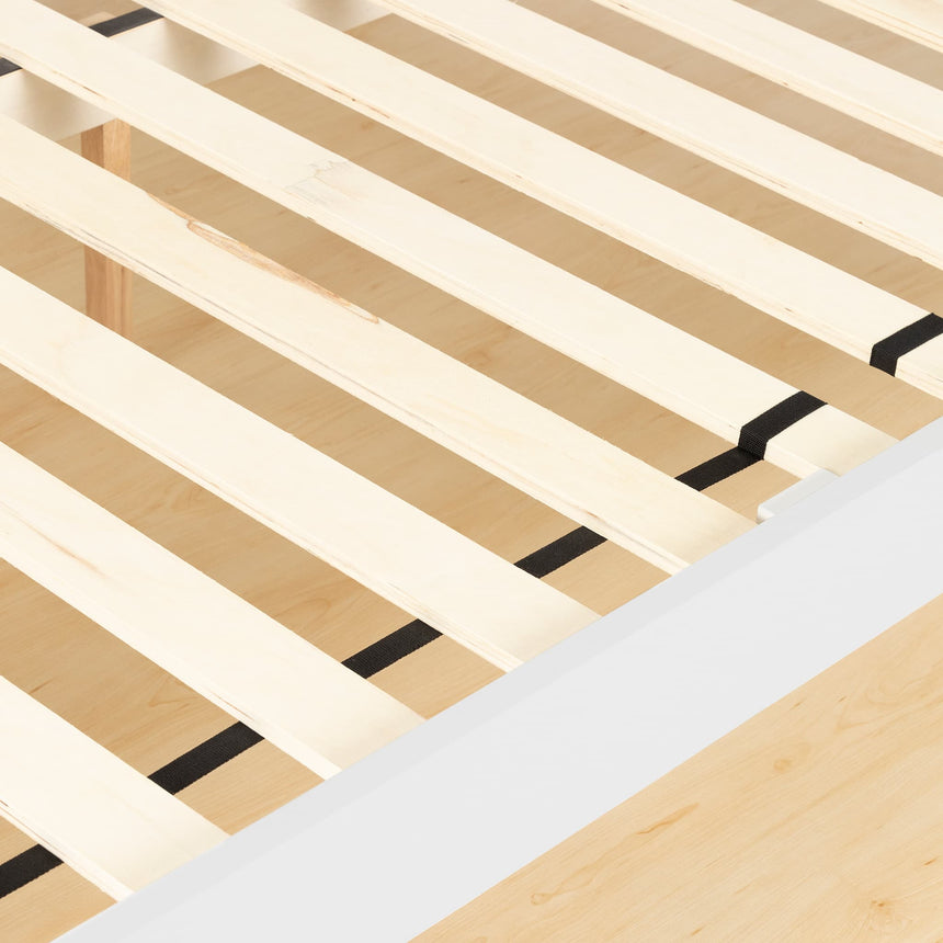 DURABLE : les lattes de bois qui supportent le matelas et la patte supplémentaire ajoutée au centre du meuble en font un choix judicieux et solide.