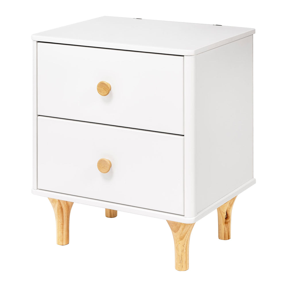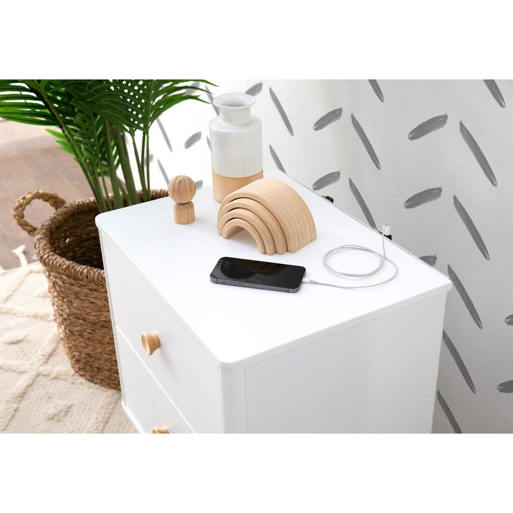 Table de Nuit Lolly avec Port USB - Blanc et Naturel