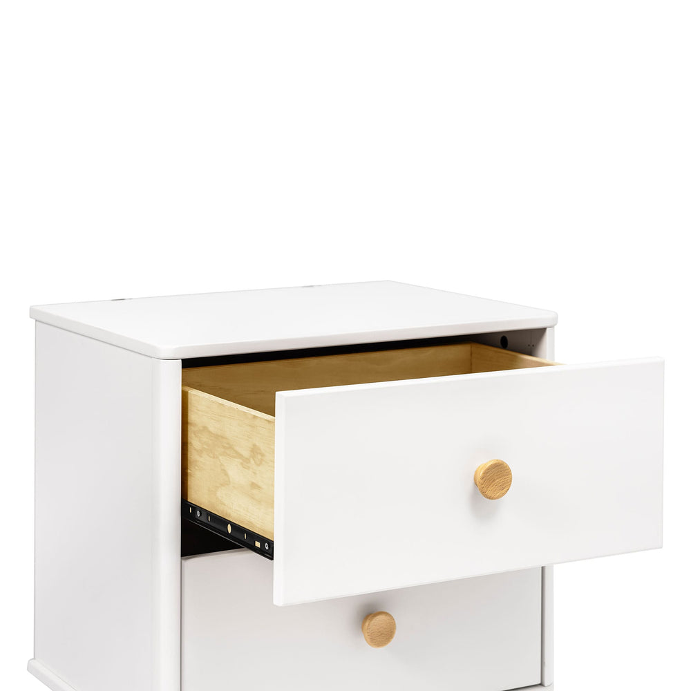 La table de chevet Lolly avec port USB est un ajout moderne et ludique à une chambre de bébé ou d'enfant avec des coins légèrement incurvés, des accents de bois naturel et deux tiroirs à glissement doux. Installation facile avec un minimum d'assemblage requis.