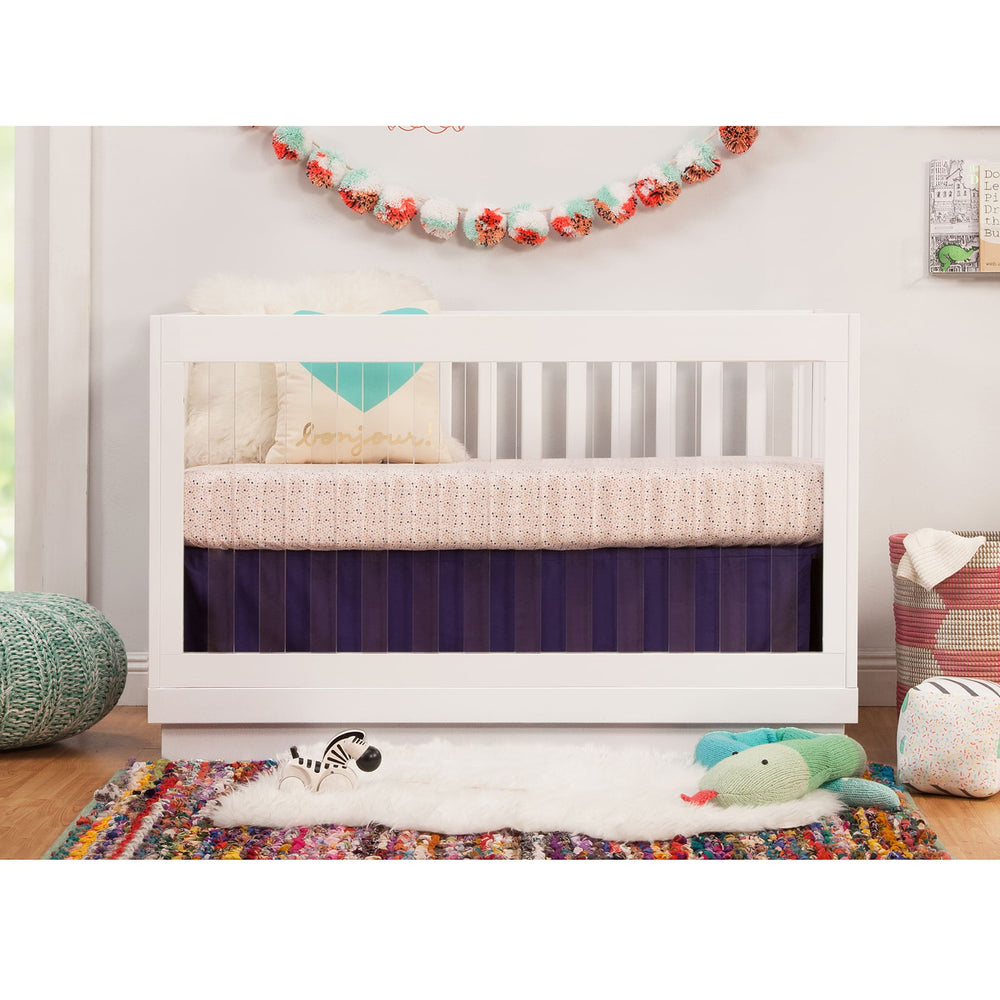 Le lit de bébé convertible 3 en 1 Harlow fait passer le design chic de la chambre de bébé au niveau supérieur avec des lattes en acrylique offrant les meilleures vues de votre tout-petit pour que vous ne manquiez rien. Moderne et fonctionnel, un kit de conversion de lit pour tout-petit inclus vous permet de passer en toute transparence du lit de bébé au lit de bébé au lit de jour à mesure que votre bébé grandit. La base et le cadre solides sont fabriqués à partir de bois de pin durable et certifiés GREENGUARD Gold pour la qualité de l'air intérieur.