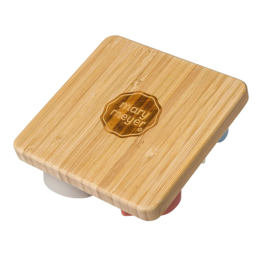 Silicone de qualité alimentaire aux couleurs douces et subtiles avec plateau en bambou lisse. Emballé dans une boîte de marque.