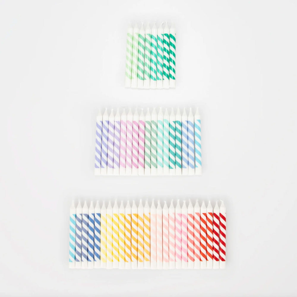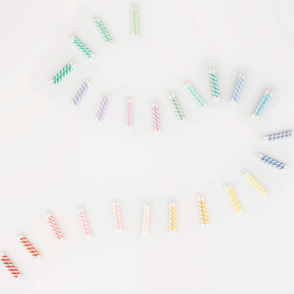 Les rayures s'affirment et sont toujours très tendance ! Donnez à n'importe quel gâteau ou cupcake un aspect très spécial avec ces bougies colorées.