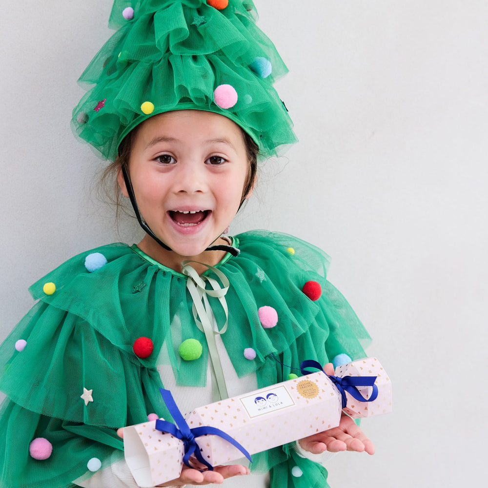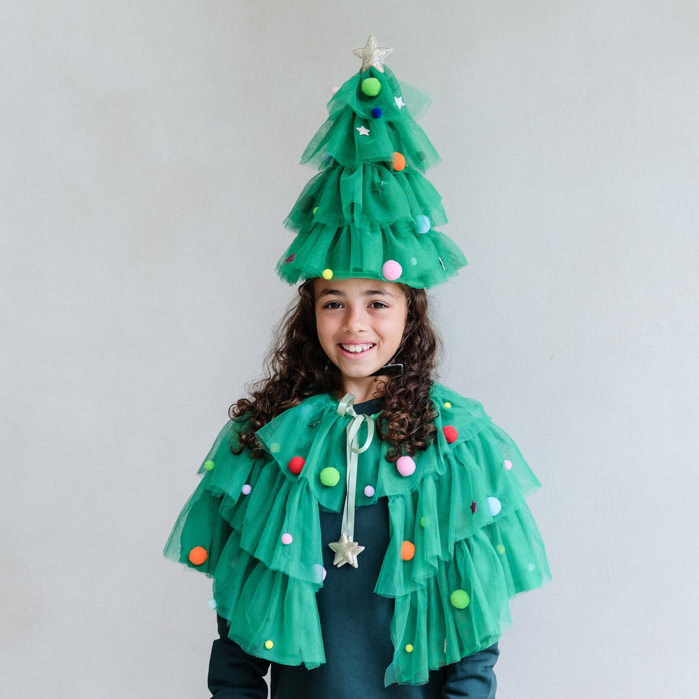 Ajoutez une bonne dose de fun festif à leur garde-robe avec notre fabuleuse cape sapin de Noël ! Ornée de pompons multicolores et d’étoiles en tissu pailleté, elle est parfaite pour tournoyer, danser… ou simplement s’amuser !