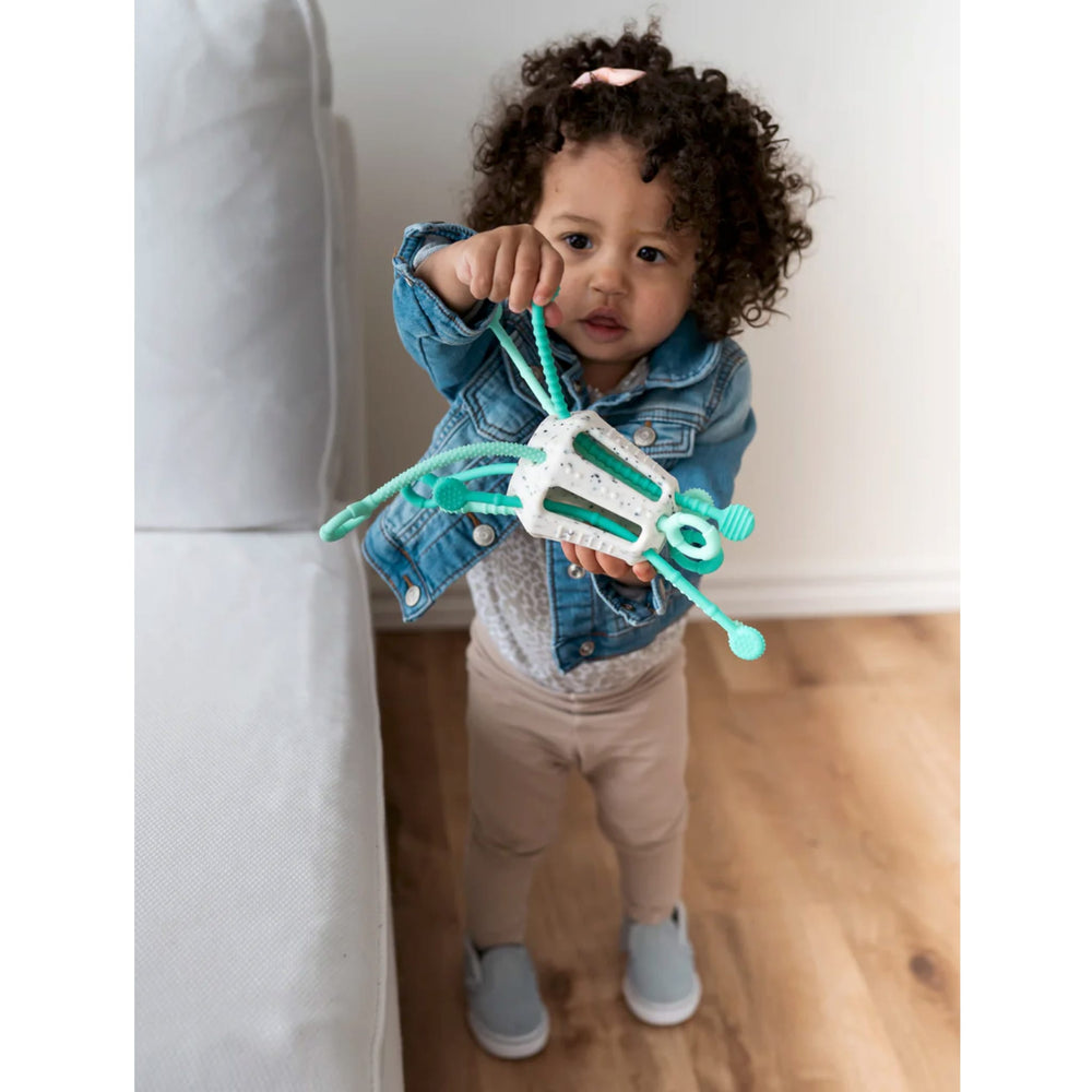 Zippee est un jouet d'éveil en silicone parfait pour les enfants de 18 mois et plus. Les petites mains ne résistent pas aux cordons flexibles et texturés de Zippee, ainsi qu'à ses poignées faciles à saisir. Les bébés et les tout-petits adorent tirer sur les cordons d'un côté à l'autre, ressentir différentes textures et entendre les sons et vibrations qu'ils produisent.