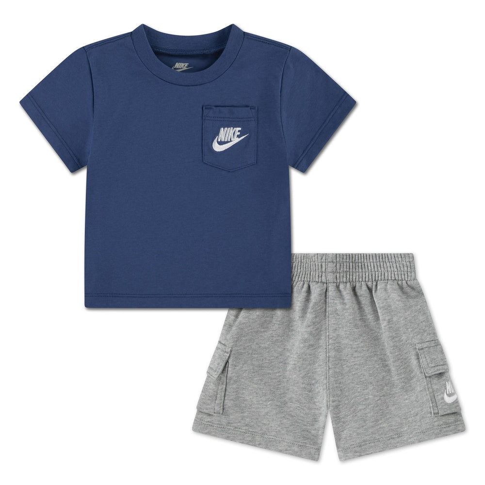 Cet ensemble 2 pièces signé Nike est une solution simple pour habiller votre petit, peu importe le programme de la journée. Le t-shirt adopte une coupe oversize avec des épaules tombantes pour un ajustement décontracté, une encolure ras-du-cou sans étiquette pour un confort sans irritation, et une poche poitrine qui ajoute une touche amusante. Le short en molleton léger (French terry) est équipé de poches cargo et d’une taille élastique pour un ajustement confortable.