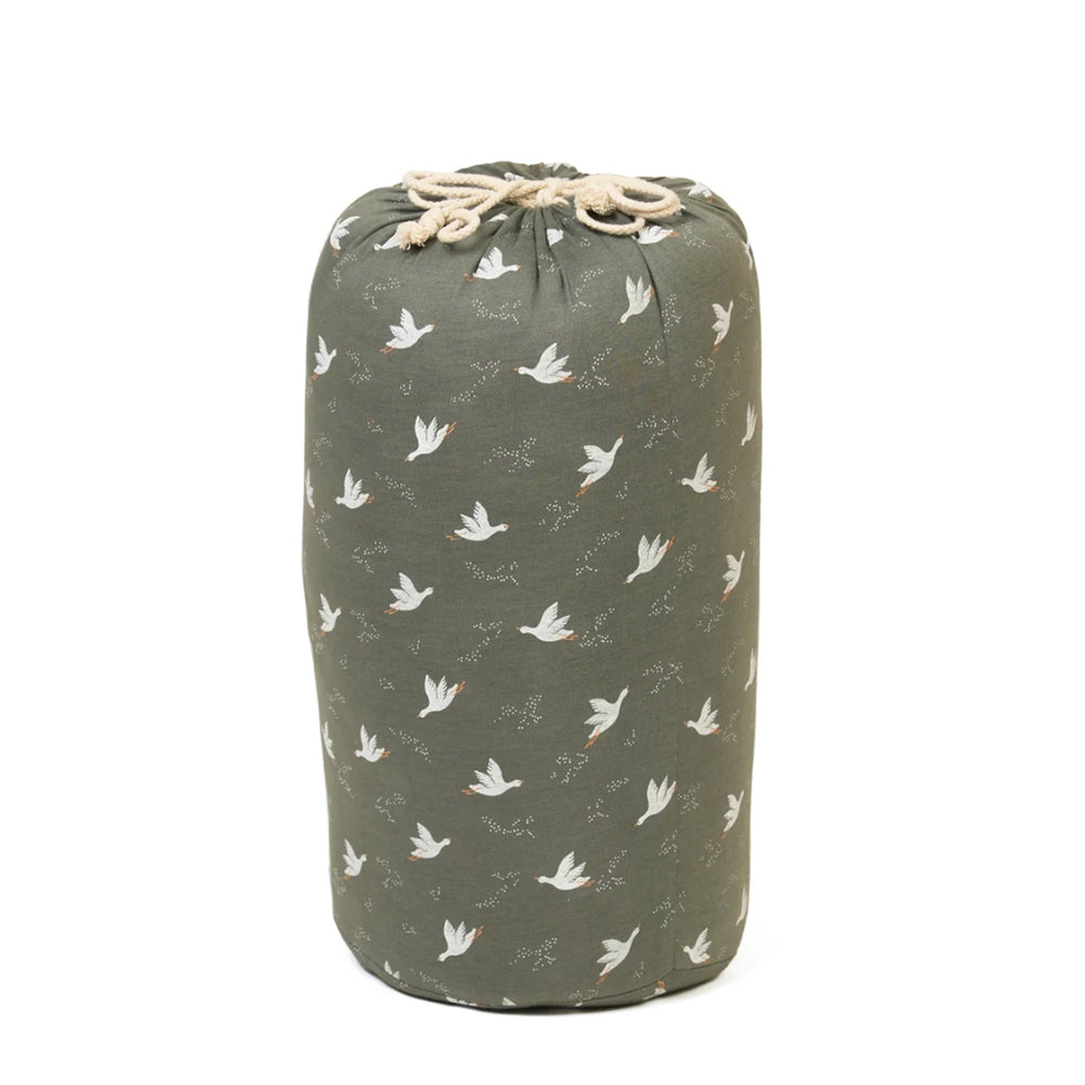 - Se transforme facilement en sac de rangement pour jouets et en sac à couches
