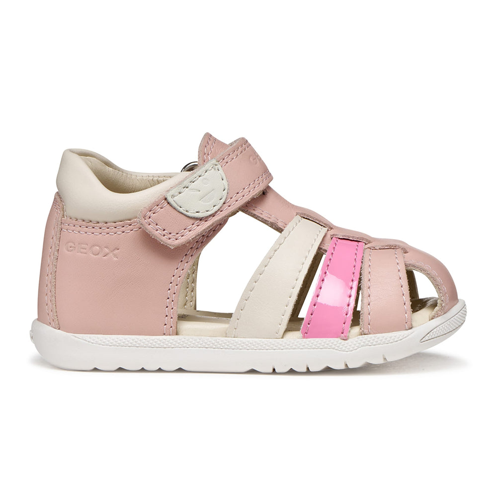 Sandales premiers pas pour bébés filles, légères et qui respirent, au look décontracté et féminin. Dans cette tendre version rose, les Macchia arborent une tige souple à effet cage en cuir nappa et matière à effet cuir. Souple et confortable, ce modèle protège les petits pieds et accompagne chaque mouvement en toute sécurité.
